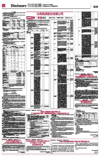 云南旅游股份有限公司2015第一季度报告