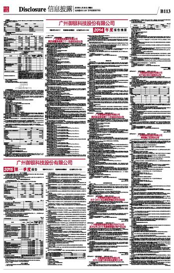 广州御银科技股份有限公司2015第一季度报告 2015-04-29 来源:证券时报网 作者: