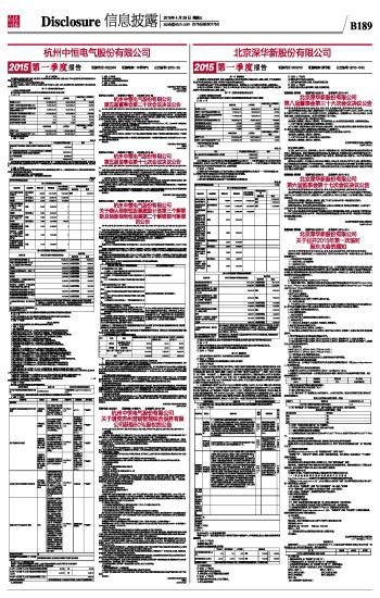 北京深华新股份有限公司2015第一季度报告 2015-04-29 来源:证券时报网 作者: