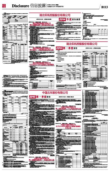 湖北仰帆控股股份有限公司2015第一季度报告 2015-04-30 来源:证券时报网 作者: