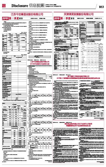 天津津滨发展股份有限公司2015第一季度报告 2015-04-30 来源:证券时报网 作者: