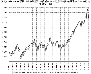 图:嘉实中证500ETF联接基金份额累计净值增长率与同期业绩比较基准收益率的历史走势对比图