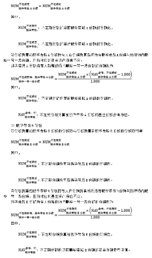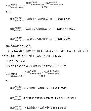 (上接B18版) 鹏华一带一路份额的基金份额持有人将按前述折算方式获得新增场外鹏华一带一路份额的分配;持有场内鹏华一带一路份额的基金份额持有人将按前述折算方式获得新增场内鹏华一带一路份额的分配。经过上述份额折算,鹏华带路A份额的基金份额参考净值调整为1.000元,鹏华一带一路份额的基金份额净值将相应调整。 每个会计年度9月第一个工作日为基金份额折算基准日,本基金将对鹏华带路A份额和鹏华一带一路份额进行定期份额折算。以下公式中“定期份额折算前鹏华带路A份额的基金份额参考净值”为每个会计年度8月最后一个自然日鹏华带路A份额基金份额参考净值。有关计算公式如下: (1)鹏华带路A份额 定期份额折算不改变鹏华带路A份额的份额数,即 ■ 定期份额折算后的鹏华一带一路份额的基金份额净值,保留到小数点后3位,小数点后第4位四舍五入,由此产生的误差计入基金财产。 (2)鹏华带路B份额 定期份额折算不改变鹏华带路B份额的基金份额参考净值及其份额数,即 ■ 5、定期份额折算示例 假设本基金成立后第2年9月第一个工作日为定期份额折算基准日,鹏华一带一路份额当天折算前资产净值为8,661,250,000元。当天场外鹏华一带一路份额、场内鹏华一带一路份额、鹏华带路A份额、鹏华带路B份额的份额数分别为55亿份、10亿份、20亿份、20亿份。本次定期份额折算基准日每份鹏华带路A份额参考净值为1.065元,且未进行不定期份额折算。 定期份额折算的对象为基准日登记在册的鹏华带路A份额和鹏华一带一路份额,即20亿份和65亿份。 (1)鹏华带路A份额持有人 定期折算后持有的鹏华带路A份额为 ■ (二)不定期份额折算 除以上定期份额折算外,本基金还将在以下两种情况进行份额折算,即当鹏华一带一路份额的基金份额净值达到1.500元时或当鹏华带路B份额的基金份额参考净值跌至0.250元时。 1、基金份额折算基准日 当达到不定期折算条件时,基金管理人可根据市场情况确定折算基准日。 2、基金份额折算对象 基金份额折算基准日登记在册的鹏华一带一路份额、鹏华带路A份额、鹏华带路B份额。 3、基金份额折算频率 不定期。 4、基金份额折算方式 当达到不定期折算条件时,本基金将分别对鹏华一带一路份额、鹏华带路A份额、鹏华带路B份额进行份额折算,份额折算后本基金将确保鹏华带路A份额与鹏华带路B份额的比例为1:1,份额折算后鹏华一带一路份额的基金份额净值、鹏华带路A份额与鹏华带路B份额的基金份额参考净值均调整为1.000元。 (1)当鹏华一带一路份额的份额净值达到1.500元时,鹏华一带一路份额、鹏华带路A份额、鹏华带路B份额将按照如下公式进行份额折算: 1)鹏华带路A份额 ①份额折算前鹏华带路A份额的份额数与份额折算后鹏华带路A份额的份额数相等,即 ■ 3)鹏华一带一路份额 鹏华一带一路份额持有人份额折算前后所持有的鹏华一带一路份额的资产净值不变。场外鹏华一带一路份额持有人份额折算后获得新增场外鹏华一带一路份额,场内鹏华一带一路份额持有人份额折算后获得新增场内鹏华一带一路份额。 鹏华一带一路份额持有人不定期份额折算后的鹏华一带一路份额的份额数为 ■