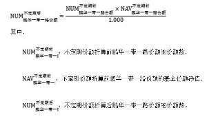 ■ 5、不定期份额折算示例 (1)鹏华一带一路份额的基金份额净值达到1.500元 设在本基金的不定期份额折算日,鹏华一带一路份额的基金份额净值、鹏华带路A份额与鹏华带路B份额的基金份额参考净值如下表所示,折算后,鹏华一带一路份额的基金份额净值、鹏华带路A份额与鹏华带路B份额的基金份额参考净值均调整为1.000元,则各持有鹏华一带一路份额、鹏华带路A份额、鹏华带路B份额10,000份的基金份额持有人所持基金份额的变化如下表所示: ■ (2)鹏华带路B份额的基金份额参考净值达到0.250元 设在本基金的不定期份额折算日,鹏华一带一路份额的基金份额净值、鹏华带路A份额与鹏华带路B份额的基金份额参考净值如下表所示,折算后,鹏华一带一路份额的基金份额净值、鹏华带路A份额、鹏华带路B份额的基金份额参考净值均调整为1.000元,则各持有鹏华一带一路份额、鹏华带路A份额、鹏华带路B份额10,000份的基金份额持有人所持基金份额的变化如下表所示: ■ (三)基金份额折算余额的处理方法 份额折算后场外基金份额的份额数计算结果保留到小数点后两位,小数点后两位以后的部分舍弃,余额计入基金财产;场内基金份额的份额数计算结果保留到整数位,余额的处理方法按照深圳证券交易所或基金登记机构的相关规则及有关规定执行。 (四)基金份额折算期间的基金业务办理 为保证基金份额折算期间本基金的平稳运作,届时基金管理人可根据深圳证券交易所、基金登记机构的相关业务规定暂停鹏华带路A份额与鹏华带路B份额的上市交易、鹏华一带一路份额的申购与赎回、鹏华一带一路份额与鹏华带路A份额、鹏华带路B份额的份额配对转换等相关业务,具体见基金管理人届时发布的相关公告。 (五)基金份额折算结果的公告 基金份额折算结束后,基金管理人应按照《信息披露办法》在指定媒介公告,并报中国证监会备案。 (六)特殊情形的处理 若在本基金的定期折算日发生基金合同约定的本基金不定期份额折算的情形时,基金管理人本着维护基金份额持有人利益的原则,可根据具体情况选择按照定期份额折算的规则或者不定期份额折算的规则进行份额折算。 若定期折算日前3个月(含)内发生过不定期折算或基金合同生效日至第1个定期折算日不足3个月的,则可不进行定期折算。若基金管理人在前述情况下决定不进行定期折算的,基金管理人应按信息披露办法的规定在指定媒介上公告不进行定期折算的提示性公告。 (七)其他事项 基金管理人、深圳证券交易所、基金登记机构有权调整上述规则,本基金基金合同将相应予以修改,且此项修改无须召开基金份额持有人大会,并在本基金更新的招募说明书中列示。 十九、基金的费用与税收 (一)基金费用的种类 1、基金管理人的管理费; 2、基金托管人的托管费; 3、基金合同生效后的标的指数许可使用费; 4、基金合同生效后与基金相关的信息披露费用; 5、基金合同生效后与基金相关的会计师费、律师费和诉讼费; 6、基金份额持有人大会费用; 7、基金的证券/期货交易费用; 8、基金的银行汇划费用; 9、账户开户费用、账户维护费用; 10、基金的上市费和年费; 11、按照国家有关规定和基金合同约定,可以在基金财产中列支的其他费用。 (二)基金费用计提方法、计提标准和支付方式 1、基金管理人的管理费 本基金的管理费按前一日基金资产净值的1.00%年费率计提。管理费的计算方法如下: H=E×1.00 %÷当年天数 H为每日应计提的基金管理费 E为前一日的基金资产净值 基金管理费每日计算,逐日累计至每月月末,按月支付,经基金管理人与基金托管人双方核对无误后,基金托管人按照与基金管理人协商一致的方式于次月前5个工作日内从基金财产中一次性支付给基金管理人。若遇法定节假日、公休假等,支付日期顺延。 2、基金托管人的托管费 本基金的托管费按前一日基金资产净值的0.22%的年费率计提。托管费的计算方法如下: H=E×0.22%÷当年天数 H为每日应计提的基金托管费 E为前一日的基金资产净值 基金托管费每日计算,逐日累计至每月月末,按月支付,基金管理人与基金托管人双方核对无误后,基金托管人按照与基金管理人协商一致的方式于次月前5个工作日内从基金财产中一次性支取。若遇法定节假日、公休日等,支付日期顺延。 3、标的指数许可使用费 本基金的标的指数许可使用费按前一日基金资产净值的0.02%的年费率计提。标的指数许可使用费的计算方法如下: H=E×0.02%÷当年天数 H为每日应计提的标的指数许可使用费 E为前一日的基金资产净值 标的指数许可使用费每日计算,逐日累计至每季季末,按季支付(当季不足50,000元的,按50,000元计算),计费期间不足一季度的,根据实际天数按比例计算。由基金管理人向基金托管人发送标的指数许可使用费划款指令,基金托管人复核后于次季前10 个工作日内从基金财产中一次性支付给标的指数供应商。若遇法定节假日、公休日等,支付日期顺延。 标的指数供应商根据相应指数许可协议变更标的指数许可使用费率和计算方式时,基金管理人需依照有关规定最迟于新的费率和计费方式实施日前2日在指定媒介公告。 4、证券账户开户费用:证券账户开户费经基金管理人与基金托管人核对无误后,自本基金成立一个月内由基金托管人从基金财产中划付,如基金财产余额不足支付