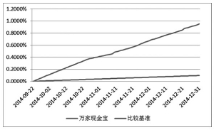 万家现金宝货币市场证券投资基金(以下简称“本基金”)经中国证监会证监许可[2014]779号文注册募集,注册日期为2014年7月28日。基金合同生效日期为2014年9月23日。 【重要提示】 基金管理人保证本招募说明书的内容真实、准确、完整。 本基金管理人保证招募说明书的内容真实、准确、完整。本招募说明书经中国证监会备案,但中国证监会接受本基金募集的注册,并不表明其对本基金的价值及市场前景等作出实质性判断或者保证,也不表明投资于本基金没有风险。 本基金在投资运作过程中可能面临各种风险,包括:因整体政治、经济、社会等环境因素对证券价格产生影响而形成的系统性风险,个别证券特有的非系统性风险,基金管理人在基金管理实施过程中产生的基金管理风险,本基金的特定风险等。 本基金是货币市场基金,属证券投资基金中的低风险品种。本基金的风险和预期收益低于股票型基金、混合型基金和债券型基金。 投资有风险,投资人在进行投资决策前,请仔细阅读本基金的招募说明书和基金合同,全面认识本基金产品的风险收益特征,充分考虑投资人自身的风险承受能力,并对于认购(或申购)基金的意愿、时机、数量等投资行为作出独立决策。在投资人作出投资决策后,基金投资运作引致的投资风险,由投资人自行负责。 基金的过往业绩并不预示其未来表现。基金管理人所管理的其它基金的业绩并不构成对本基金业绩表现的保证。 本基金管理人承诺依照恪尽职守、诚实信用、谨慎勤勉的原则管理和运用基金财产,但不保证投资本基金一定盈利,也不保证最低收益。 本招募说明书(更新)所载内容截止日为2015年3月23日,有关财务数据和净值表现截止日为2014年12月31日(财务数据未经审计)。 一、基金管理人 (一)基金管理人概况 名称:万家基金管理有限公司 住所:上海市浦东新区浦电路360号8层(名义楼层9层) 办公地址:上海市浦东新区浦电路360号8层(名义楼层9层) 法定代表人:毕玉国 总经理:方一天 成立日期:2002年8月23日 批准设立机关及批准设立文号:中国证监会证监基字【2002】44号 经营范围:基金募集;基金销售;资产管理和中国证监会许可的其他业务 组织形式:有限责任公司 注册资本:壹亿元人民币 存续期间:持续经营 联系人:兰剑 电话:021-38909626 传真:021-38909627 (二)主要人员情况 1、基金管理人董事会成员 董事长毕玉国先生,中共党员,博士研究生学历,高级会计师,注册企业风险管理师。历任莱钢股份公司炼铁厂财务科科长,莱钢股份公司财务处成本科科长,莱钢集团财务部副部长,莱钢驻日照钢铁有限公司财务总监,齐鲁证券计划财务部总经理,齐鲁证券副总经理兼财务负责人等职。现任齐鲁证券有限公司党委委员、总经理。2011年3月起任本公司董事长。 董事马永春先生,政治经济学硕士学位,曾任新疆自治区党委政策研究室科长,新疆通宝投资有限公司总经理,新疆对外经贸集团总经理,新疆天山股份有限公司董事,现任新疆国际实业股份有限公司副董事长兼总经理。 董事吕祥友先生,中共党员,大学本科,硕士学位,高级经济师,曾任莱芜钢铁集团有限公司财务处科长、鲁银投资集团股份有限公司办公室主任兼董事会秘书、天同证券风险处置工作小组托管组成员,现任齐鲁证券有限公司副总经理兼合规总监、董事会秘书、党委组织部部长、人力资源部总经理、鲁证期货有限公司董事。 董事方一天先生,大学本科,学士学位,先后在上海财政证券公司、中国证监会系统、上证所信息网络有限公司任职,2014年10月加入万家基金管理有限公司,2014年12月起任公司董事,2015年2月起任公司总经理。 独立董事陈增敬先生,中国民主建国会成员,博士研究生,教授,曾任山东大学数学院讲师兼副教授,法国国家信息与自动化研究所博士后,加拿大西安大略大学保险系访问学者、兼职教授,山东大学金融研究院(现更名为山东大学齐鲁证券金融研究院)常务副院长兼教授,现任山东大学齐鲁证券金融研究院院长兼数学院副院长、教授。 独立董事骆玉鼎先生,中共党员,研究生,经济学博士,副教授,曾任上海财经大学金融学院银行系讲师,上海财经大学证券期货学院副教授、副院长,美国国际管理研究生院(雷鸟)访问研究员,上海财经大学证券期货学院副院长兼副教授,新疆财经大学金融系支教教师,上海财经大学金融学院副院长、常务副院长,上海财经大学金融学院副教授,现任上海财经大学商学院副院长。 独立董事黄磊先生,中国民主建国会成员,经济学博士,教授,曾任贵州财经学院财政金融系教师、山东财经大学金融学院院长、山东省政协常委,现任山东财经大学资本市场研究中心主任、山东金融产业优化与区域管理协同创新中心副主任、山东省人大常委、山东省人大财经委员会委员、教育部高校金融类专业教学指导委员会委员。 2、基金管理人监事会成员 监事会主席李润起先生,硕士学位,经济师。曾任宏源证券股份有限公司文艺路营业部客户主管、公司投行部项目经理,新疆国际实业股份有限公司证券事务代表,现任新疆国际实业股份有限公司董事会秘书兼副总经理。 监事张浩先生,中共党员,现任山东省国有资产投资控股有限公司综合部(党委办公室)部长(主任)。 监事陈广益先生,硕士学位,先后任职于苏州对外贸易公司、兴业全球管理有限公司。2005年3月加入