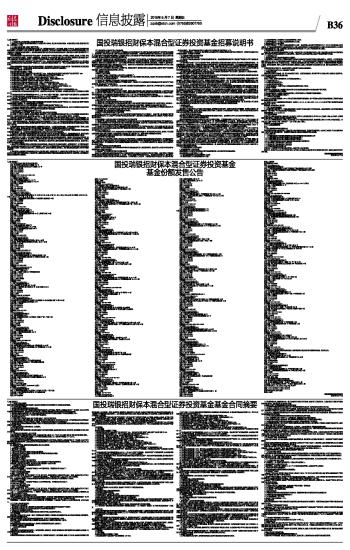 (上接B35版) (二)基金托管人对基金管理人的业务监督和核查 1、基金托管人根据有关法律法规的规定及《基金合同》的约定,建立相关的技术系统,对基金管理人的投资运作进行监督。主要包括以下方面: (1)对基金的投资范围、投资对象进行监督。 本基金的投资范围是具有良好流动性的金融工具,包括国内依法发行上市的债券、股票(含中小板、创业板及其他经中国证监会核准上市的股票)、权证、股指期货、国债期货、货币市场工具及法律、法规或中国证监会允许基金投资的其他金融工具(但须符合中国证监会的相关规定)。如法律法规或监管机构以后允许基金投资其他品种,基金管理人在履行适当程序后,可以将其纳入投资范围。 本基金将基金资产划分为保本资产和收益资产,其中保本资产主要投资于国债、央行票据、金融债、企业债、公司债、可转换债券(含分离交易可转债)、次级债、短期融资券、中期票据、中小企业私募债券、资产支持证券、国债期货、债券回购、银行存款、货币市场工具等固定收益品种。收益资产主要投资于股票、权证以及股指期货等权益类品种。 本基金持有的保本资产占基金资产的比例不低于60%。本基金持有的收益资产占基金资产的比例不高于40%,其中基金持有的全部权证的市值不超过基金资产净值的3%。本基金持有现金或者到期日在一年以内的政府债券不低于基金资产净值的5%。 若保本周期届满时本基金不符合保本基金存续条件,本基金依据《基金合同》的约定变更为“国投瑞银招财灵活配置混合型证券投资基金”的,上述投资范围、投资对象应依据《基金合同》的约定进行相应修改。 (2)对基金投融资比例进行监督; 基金的投资组合应遵循以下限制: 1)本基金持有保本资产占基金资产的比例不低于60%。本基金持有的收益资产占基金资产的比例不高于40%; 2)本基金持有现金或者到期日在一年以内的政府债券不低于基金资产净值的5%; 3)本基金持有一家公司发行的证券,其市值不超过基金资产净值的10%; 4)本基金管理人管理的全部基金持有一家公司发行的证券,不超过该证券的10%; 5)本基金持有的全部权证,其市值不得超过基金资产净值的3%; 6)本基金管理人管理的全部基金持有的同一权证,不得超过该权证的10%; 7)本基金在任何交易日买入权证的总金额,不得超过上一交易日基金资产净值的0.5%; 8)本基金投资于同一原始权益人的各类资产支持证券的比例,不得超过基金资产净值的10%; 9)本基金持有的全部资产支持证券,其市值不得超过基金资产净值的20%; 10)本基金持有的同一(指同一信用级别)资产支持证券的比例,不得超过该资产支持证券规模的10%; 11)本基金管理人管理的全部基金投资于同一原始权益人的各类资产支持证券,不得超过其各类资产支持证券合计规模的10%; 12)本基金应投资于信用级别评级为BBB以上(含BBB)的资产支持证券。基金持有资产支持证券期间,如果其信用等级下降、不再符合投资标准,应在评级报告发布之日起3个月内予以全部卖出; 13)基金财产参与股票发行申购,本基金所申报的金额不超过本基金的总资产,本基金所申报的股票数量不超过拟发行股票公司本次发行股票的总量; 14)本基金进入全国银行间同业市场进行债券回购的资金余额不得超过基金资产净值的40%,本基金在全国银行间市场中债券回购最长期限为1年,债券回购到期后不得展期; 15)本基金持有的单只中小企业私募债券,其市值不得超过基金资产净值的10%; 16)本基金参与股指期货交易、国债期货,应当符合基金合同约定的保本策略和投资目标,且每日所持期货合约及有价证券的最大可能损失不得超过基金净资产扣除用于保本部分资产后的余额; 17)本基金总资产不得超过基金净资产的200%; 18)相关法律法规以及监管部门和本《基金合同》规定的其它投资限制。 除上述第12)项以外,因证券、期货市场波动、证券发行人合并、基金规模变动等基金管理人之外的因素致使基金投资比例不符合上述规定投资比例的,基金管理人应当在10个交易日内进行调整。法律、法规另有规定时,从其规定。 基金管理人应当自基金合同生效之日起6个月内使基金的投资组合比例符合基金合同的有关约定。保本周期届满时,在符合保本基金存续条件下,本基金继续存续并转入下一保本周期。基金管理人将在保本周期到期前公告的到期处理规则中确定下一个保本周期的起始时间。基金管理人应当自保本周期起始之日起3个月内使基金的投资组合比例符合基金合同的有关约定。期间,本基金的投资范围、投资策略应当符合基金合同的约定。基金托管人对基金的投资的监督与检查自基金合同生效之日起开始。 如果法律法规对基金合同约定投资组合比例限制进行变更的,以变更后的规定为准。法律法规或监管部门取消上述限制,如适用于本基金,则本基金投资不再受相关限制,但须提前公告,不需要经基金份额持有人大会审议。 若保本周期届满时本基金不符合保本基金存续条件,本基金依据《基金合同》的约定变更为“国投瑞银招财灵活配置混合型证券投资基金”的,上述投资比例限制等应依据《基金合同》的约定进行相应修改。 2、基金托管人应根据有关法律法规的规定及《基金合同》的约定,对基金资产净值计算、基金份额净值计算、应收资金到账、基金费用开支