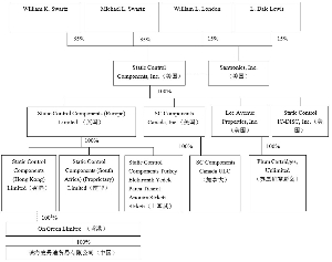 (上接B5版) ■ 注:交易对方各自通过其分别作为受托人的信托计划持有SCC的股权。 二、本次交易对方详细情况 (一)Michael L. Swartz 1、基本情况 ■ 2、最近三年的职业和职务及任职单位产权关系 Michael L. Swartz2009-2014期间担任SCC副总裁,现任担任SCC联席总裁。 3、与上市公司的关联关系 Michael L. Swartz与上市公司之间不存在关联关系。 4、向上市公司推荐董事或者高级管理人员的情况 Michael L. Swartz不存在向上市公司推荐董事或者高级管理人员的情况。 5、最近五年所受行政处罚、刑事处罚、重大诉讼及仲裁情况 Michael L. Swartz最近五年内没有在中国境内受过行政处罚(与证券市场明显无关的除外)、刑事处罚或者其他涉及与经济纠纷有关的重大民事诉讼或者仲裁。 6、最近五年诚信情况 Michael L. Swartz最近五年不存在未按期偿还大额债务、未履行承诺、被中国证监会采取行政监管措施或受到证券交易所纪律处分的情况。 (二)William K. Swartz 1、基本情况 ■ 2、最近三年的职业和职务及任职单位产权关系 William K. Swartz 2009-2014期间担任SCC联席总裁。 3、与上市公司的关联关系 William K. Swartz与上市公司之间不存在关联关系。 4、向上市公司推荐董事或者高级管理人员的情况 William K. Swartz不存在向上市公司推荐董事或者高级管理人员的情况。 5、最近五年所受行政处罚、刑事处罚、重大诉讼及仲裁情况 William K. Swartz最近五年内没有在中国境内受过行政处罚(与证券市场明显无关的除外)、刑事处罚或者其他涉及与经济纠纷有关的重大民事诉讼或者仲裁。 6、最近五年诚信情况 William K. Swartz最近五年不存在未按期偿还大额债务、未履行承诺、被中国证监会采取行政监管措施或受到证券交易所纪律处分的情况。 (三)William L. London 1、基本情况 ■ 2、最近三年的职业和职务及任职单位产权关系 William L. London 2009-2014期间担任SCC法律顾问、副总裁。 3、与上市公司的关联关系 William L. London与上市公司之间不存在关联关系。 4、向上市公司推荐董事或者高级管理人员的情况 William L. London不存在向上市公司推荐董事或者高级管理人员的情况。 5、最近五年所受行政处罚、刑事处罚、重大诉讼及仲裁情况 William L. London最近五年内没有在中国境内受过行政处罚(与证券市场明显无关的除外)、刑事处罚或者其他涉及与经济纠纷有关的重大民事诉讼或者仲裁。 6、最近五年诚信情况 William L. London最近五年不存在未按期偿还大额债务、未履行承诺、被中国证监会采取行政监管措施或受到证券交易所纪律处分的情况。 (四)L. Dale Lewis 1、基本情况 ■ 2、最近三年的职业和职务及任职单位产权关系 L. Dale Lewis 2009-2014期间担任SCC副总裁。 3、与上市公司的关联关系 L. Dale Lewis与上市公司之间不存在关联关系。 4、向上市公司推荐董事或者高级管理人员的情况 L. Dale Lewis不存在向上市公司推荐董事或者高级管理人员的情况。 5、最近五年所受行政处罚、刑事处罚、重大诉讼及仲裁情况 L. Dale Lewis最近五年内没有在中国境内受过行政处罚(与证券市场明显无关的除外)、刑事处罚或者其他涉及与经济纠纷有关的重大民事诉讼或者仲裁。 6、最近五年诚信情况 L. Dale Lewis最近五年不存在未按期偿还大额债务、未履行承诺、被中国证监会采取行政监管措施或受到证券交易所纪律处分的情况。 第四节 交易标的基本情况 一、交易标的基本情况 ■ 二、交易标的历史沿革 (一)公司设立 SCC设立于1987年4月17日,设立时授权资本为1,000,000股。 (二)历次增资、减资及股权转让情况 1997年4月25日,SCC授予1,000,000无面值普通股,其中500,000含投票权普通股,500,000不含投票权普通股。 2014年7月1日,Edwin H. Swartz通过信托计划持有的2,583.5含投票权普通股变更为不含投票权普通股。本次股份性质变更前,SCC共发行50,595股,其中31,730含投票权普通股,18,865不含投票权普通股,变更后,29,146.50含投票权普通股,21,448.50不含投票权普通股。 2014年7月1日,Edwin H. Swartz向L. Dale Lewis转让7,589.25不含投票权普通股。 标的资产目前最新股权结构的具体情况参见“第三节交易对方基本情况”之“一、本次交易对方总体情况”。 三、交易标的产权或控制关系 本次交易标的的股东为William K. Swartz、Michael L. Swartz、William L. London、L. Dale Lewis,股权控制关系如下: ■ 注1:根据目前金杜律师的尽职调查成果,Joint Up Limited于2008年8月15日与Static Control Components (HongKong) Limited签署一份信托协议,并代Static Control Components (HongKong) Limited持有1股On Green Limited股份。根据《股权购买协议》,在本次交易交割前,交易对方应将Joint Up Limited持有的On Green Limited的股权转让给Static Control Components (Hong Kong) Limited。 四、交易标的出资及合法存续情况 标的资产均合法设立并有效存续。 五、交易标的下属公司情况 (一)Santronics Inc. ■ 注1:交易对方各自通过其分别作为受托人的信托计划持有Santronics, Inc.的股权。注2:根据PricewaterhouseCoopers LLP出具的关于SCC的审计报告,按照美国会计准则的规定Santronics, Inc.属于SCC合并报表范围。根据《股权购买协议》,在本次交易交割前,交易对方应将Santronics, Inc.重组为SCC的子公司,或者吸收合并到SCC体内。 (二)SC Components Canada, Inc. ■ (三)Static Control IC-DISC, Inc. ■ (四)Lee Avenue Properties, Inc. ■ (五)Plum Cartridges, Unlimited ■ (六)SC Components Canada
