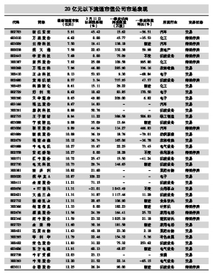 一季度获得机构重仓增持的部分小市值公司 今年以来随着行情的不断走高,沪深两市小市值公司正日趋稀缺。据证券时报数据中心统计(剔除今年上市新股),今年1月底,沪深两市流通市值低于20亿元的公司尚有411家,截至昨日,这一数字已大幅减少至135家,1月以来月均消失逾80家。剔除近期停牌的个股,这些公司今年以来股价的平均涨幅为69%,大幅高于同期上证指数36%的涨幅。 据统计,135家流通市值在20亿元以下的上市公司中,有32家处于重大资产重组停牌、重大事项停牌、非公开增发等资本运作中,占逾两成。低市值股票无疑是借壳的最佳对象,各路资本也因其股价可能爆发等因素而对之青睐有加。 一批先知先觉的机构在今年一季度布局了小市值股票。据统计,有66只股票一季度被机构新进或增持,有些个股被机构持有高达千万股。如乔治白最新流通市值为13.09亿元,今年一季度被机构持有1149万股,环比增114%。除此之外,被各路机构大手笔增持的小市值公司还有双龙股份、会稽山、红阳能源等多家公司。 一些被机构增持的小市值股票目前涨幅明显低于大盘,如双龙股份被机构增持超100%,且持股达1331万股,3月11日以来涨17%,低于大盘涨幅。随着小市值公司日趋稀缺,那些低于大盘涨幅的公司投资者不妨多加关注。(陈建如) 20亿元以下流通市值公司每月数量 (专题数据由证券时报中心数据库提供,数据来源于上市公司公告,若有出入,请以公告为准) (融资融券数据日期为5月11日) 本版导读: