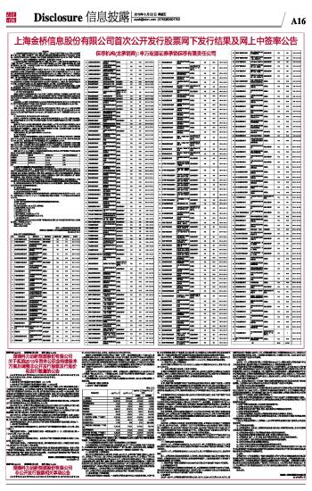根据2015年5月11日刊登的《上海金桥信息股份有限公司首次公开发行股票发行安排及初步询价公告》中公布的网下配售原则,配售结果如下: