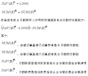 ③折算前的食品B份额持有人,以食品B份额在基金份额折算基准日的基金份额净值超出本金1.0000元部分,获得新增国泰食品份额的份额分配。折算不改变食品B份额持有人的资产净值,其持有的食品B份额净值折算调整为1.0000元、份额数量不变,相应折算增加场内国泰食品份额。