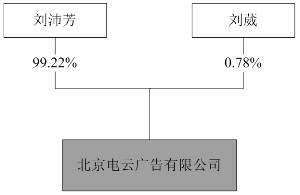(上接B18版) ■ 14、宝梧实业 (1)基本情况 ■ (2)历史沿革 ① 2013年11月,设立 南昌宝梧实业有限公司于2013年11月设立,王艳和陈广分别出资95万元、5万元,注册资本为100万元。2013年11月25日,江西华宏会计师事务所有限公司对前述出资进行了审验,并出具了“赣华宏会验字(2013)第11-291号”《验资报告》。。设立时,王艳持股95%,陈广持股5%。 ②2014年11月,第一次股权转让 2014年11月25日,陈广将其持有的宝梧实业5%的股权转让给深圳市同彤投资有限公司。宝梧实业已就上述股权转让事宜完成了工商变更登记。本次股权转让后,王艳持股95%,深圳市同彤投资有限公司持股5%。 (3)产权控制结构图 截至本摘要签署日,宝梧实业的产权控制结构图如下: ■ (4)交易对方主要股东情况 ①王艳 ■ ②深圳市同彤投资有限公司 ■ (5)主要业务发展及主要财务数据 宝梧实业于2013年11月成立,除股权投资外暂无其他实际业务。最近一年未经审计的主要财务数据如下: 单位:元 ■ 15、柴志峰 (1)基本情况 ■ (2)近三年的职业和职务及与任职单位的产权关系 ■ (3)控制的核心企业和关联企业的基本情况 截至本摘要出具日,柴志峰控制的企业情况如下: ■ 16、电云广告 (1)基本情况 ■ (2)历史沿革 ①2012年5月,设立 电云广告由刘沛芳和刘葳于2012年5月7日分别出资47.5万元和2.5万元设立,公司设立时的注册资本为50万元。2012年4月16日,北京方诚会计师事务所有限公司对前述出资进行了审验,并出具了“方会验〔2012〕0289号”《验资报告》。公司设立时,电云广告股权结构情况如下: ■ ②2013年12月,第一次增资 2013年12月9日,刘沛芳以货币方式对电云广告增资至317.5万元,增资后注册资本为320万元。2013年12月5日,北京方诚会计师事务所有限公司对前述出资进行了审验,并出具了“方会验〔2013〕00903号”《验资报告》。电云广告已就上述增资事宜完成了工商变更登记。本次增资完成后,股权结构情况如下: ■ (3)产权控制结构图 截至本摘要签署日,电云广告的产权控制结构图如下: ■ (4)交易对方主要股东情况 ①刘沛芳 ■ ②刘葳 ■ (5)主要业务发展及主要财务数据 电云广告最近三年主要从事广告代理及咨询业务。电云广告最近二年未经审计的主要财务数据如下: 单位:元 ■ 17、邓长春 (1)基本情况 ■ (2)近三年的职业和职务及与任职单位的产权关系 ■ (3)控制的核心企业和关联企业的基本情况 截至本摘要签署日,邓长春不存在控制的企业。 18、齐斌 (1)基本情况 ■ (2)近三年的职业和职务及与任职单位的产权关系 ■ (3)控制的核心企业和关联企业的基本情况 截至本摘要签署日,齐斌不存在控制的企业。 19、吴旻 (1)基本情况 ■ (2)近三年的职业和职务及与任职单位的产权关系 ■ (3)控制的核心企业和关联企业的基本情况 截至本摘要出具日,吴旻控制的企业情况如下: ■ 20、黄金辉 (1)基本情况 ■ (2)近三年的职业和职务及与任职单位的产权关系 黄金辉已退休,最近三年未在任何单位任职。 (3)控制的核心企业和关联企业的基本情况 截至本摘要签署日,黄金辉不存在控制的企业。 21、杨方 (1)基本情况 ■ (2)近三年的职业和职务及与任职单位的产权关系 ■ (3)控制的核心企业和关联企业的基本情况 截至本摘要签署日,杨方不存在控制的企业。 22、张俊 (1)基本情况 ■ (2)近三年的职业和职务及与任职单位的产权关系 ■ (3)控制的核心企业和关联企业的基本情况 截至本摘要签署日,张俊不存在控制的企业。 23、赵铁栓 (1)基本情况 ■ (2)近三年的职业和职务及与任职单位的产权关系 ■ (3)控制的核心企业和关联企业的基本情况 截至本摘要出具日,赵铁栓控制的企业情况如下: ■ 24、蔡洪雄 (1)基本情况 ■ (2)近三年的职业和职务及与任职单位的产权关系 ■ (3)控制的核心企业和关联企业的基本情况 截至本摘要出具日,蔡洪雄控制企业情况如下: ■ 25、王志强 (1)基本情况 ■ (2)近三年的职业和职务及与任职单位的产权关系 ■ (3)控制的核心企业和关联企业的基本情况 截至本摘要签署日,王志强不存在控制的企业。 26、孟梦雅 (1)基本情况 ■ (2)近三年的职业和职务及与任职单位的产权关系 ■ (3)控制的核心企业和关联企业的基本情况 截至本摘要签署日,孟梦雅不存在控制的企业。 27、袁博 (1)基本情况 ■ (2)近三年的职业和职务及与任职单位的产权关系 ■ (3)控制的核心企业和关联企业的基本情况 截至本摘要签署日,袁博不存在控制的企业。 28、周文国 (1)基本情况 ■ (2)近三年的职业和职务及与任职单位的产权关系 ■ (3)控制的核心企业和关联企业的基本情况 截至本摘要出具日,周文国控制的企业情况如下: ■ 29、邓欢 (1)基本情况 ■ (2)近三年的职业和职务及与任职单位的产权关系 ■ (3)控制的核心企业和关联企业的基本情况 截至本摘要出具日,邓欢持有佳创实业70%的股权。佳创实业详情参见本节“二、交易对方基本情况\(一)交易对方\11、佳创实业”。 30、高军 (1)基本情况 ■ (2)近三年的职业和职务及与任职单位的产权关系 ■ (3)控制的核心企业和关联企业的基本情况 截至本摘要出具日,高军共同控制的企业情况如下: ■ 31、罗爱莲 (1)基本情况 ■ (2)近三年的职业和职务及与任职单位的产权关系 罗爱莲已退休,最近三年未在任何单位任职。 (3)控制的核心企业和关联企业的基本情况 截至本摘要签署