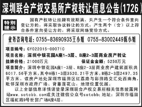 [AD]深圳联合产权交易所产权转让信息公告