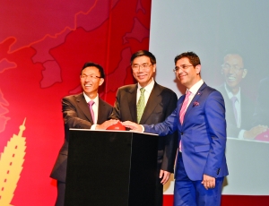 中国工商银行日前宣布,已完成出资3.16亿美元收购土耳其纺织银行75.5%股份的交易。这次收购是中资银行首次在土耳其设立营业性机构,将成为中土两国金融合作的重要里程碑事件。图为当地时间5月25日,在土耳其伊斯坦布尔举行的收购庆典仪式上,中国驻土耳其大使郁红阳(左)、中国工商银行董事长姜建清(中)和伊斯坦布尔省副省长伊斯梅尔·居尔泰金为工行行标揭幕。新华社/图文 本版导读: