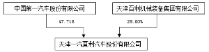 信息披露义务人声明 一、信息披露义务人依据《中华人民共和国公司法》、《中华人民共和国证券法》、《上市公司收购管理办法》、《公开发行证券的公司信息披露内容提要与格式准则第15号-权益变动报告书》及其他相关法律、行政法规和部门规章的有关规定编写。 二、信息披露义务人签署本报告书已获得必要的授权和批准,其履行亦不违反信息披露义务人公司章程或内部规则中的任何条款,或与之相冲突。 三、依据《中华人民共和国证券法》、《上市公司收购管理办法》、《公开发行证券的公司信息披露内容提要与格式准则第15号-权益变动报告书》的规定,本报告书已全面披露信息披露义务人在天津一汽夏利汽车股份有限公司中拥有权益的股份变动情况。 截止本报告书签署之日,除本报告书披露的持股信息外,信息披露义务人没有通过任何其他方式增加或减少其在天津一汽夏利汽车股份有限公司中拥有权益的股份。 四、本次信息披露义务人持股变化的原因是天津百利机械装备集团有限公司减持其持有天津一汽夏利汽车股份有限公司的无限售条件流通股份后,其持股比例低于天津一汽夏利汽车股份有限公司总股份的25%。 五、本次信息披露义务人持股变动是根据本报告所载明的资料进行的。除天津一汽夏利汽车股份有限公司外,没有委托或者授权任何其他人提供未在本报告中列载的信息和对报告做出任何解释或者说明。 简式权益变动报告书 第一节 释义 除非另有说明,以下简称在本报告书中作如下释义:(本次变动数,达到25) ■ 第二节 信息披露义务人介绍 1、信息披露义务人基本情况 名称:天津百利机械装备集团有限公司 注册地址:天津市南开区长江道4号 法定代表人:左斌 注册资本:伍拾柒亿贰仟万元人民币 营业执照注册号码:120000000024782 税务登记证号码:津税证字12010430039577X 公司类型:有限责任公司(国有独资) 经营范围:机电产品的制造(汽车除外);汽车配件、拖拉机及其配件、内燃机及配件的制造与加工;与该制造相关的机械、电子、成套设备、模具、工具、通用机械、汽车用材料的制造与加工;机电产品(小轿车除外)、汽车零部件的批发及零售;仓储(危险品除外);汽车(不含小轿车)、拖拉机及零部件、机电设备销售;房屋、机电设备租赁;机电设备安装;电子信息、机电一体化、新能源和节能、环境科学和劳动保护、新型建筑材料的技术开发、咨询、服务、转让;广告业务(以上经营范围涉及行业许可的凭许可证件,在有效期内经营,国家有专项专营规定的按规定办理)(依法须经批准的项目,经相关部门批准后方可开展经营活动)。 营业期限:2014年4月30日至长期 成立日期:2014年4月30日 股东名称:天津市人民政府国有资产监督管理委员会,持有百利装备集团100%的股份。 通讯地址:天津市南开区长江道4号 联系人:韩雪爱 联系电话:022-27686835 传真:022-27305886 2、信息披露义务人与上市公司之间的控制关系 ■ 三、信息披露义务人董事及主要负责人情况 ■ 四、截止本报告书签署之日,信息披露义务人未持有、控制其他上市公司5%以上的发行在外的股份情况。 第三节 权益变动目的 1、权益变动目的 偿还银行借款及债务以及增加对外投资。 2、信息披露义务人是否有意在未来12个月内继续增加或减少其在上市公司中拥有的权益 信息披露义务人在未来十二个月内有可能继续减持所持有的*ST夏利的股份。 第四节 权益变动方式 1、信息披露义务人在上市公司中拥有权益的股份数量及变动情况 本次变动前,百利装备集团持有*ST夏利无限售条件流通股409,908,608股,占公司总股本的25.70%. 2015年5月26日,百利装备集团通过深圳证券交易所集中竞价交易方式分别减持其持有的公司无限售条件流通股11,160,000股,占公司总股本的0.70%。 本次变动后,百利装备集团仍持有*夏利无限售条件流通股398,748,608股,占公司总股本的25.00%。 ■ 2、本次权益变动方式 ■ 信息披露义务人在上市公司拥有权益股份减少达到本报告法定披露比例的日期为2015年5月26日。 第五节 前6个月内买卖上市交易股份的情况 除本报告所披露的信息外,信息披露义务人在本次权益变动之日起前6个月内通过深圳证券交易所交易系统减持*ST股票具体情况如下: ■ 第六节 其他重大事项 除本报告书所载事项外,信息披露义务人不存在为避免对报告书内容产生误解而必须披露的其他重大信息。 第七节 备查文件 1、信息披露义务人营业执照复印件 2、信息披露义务人董事及其主要负责人的名单及其身份证明文件 信息披露义务人声明 本人(以及本人所代表的机构)承诺本权益变动报告书不存在虚假记载、误导性陈述或重大遗漏,并对其真实性、准确性、完整性承担个别和连带的法律责任。 信息披露义务人:天津百利机械装备集团有限公司 法定代表人: 左 斌 签署日期:2015年5月27日