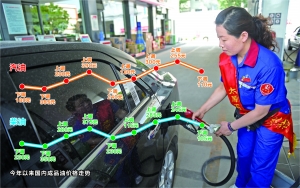 国家发展改革委8日发出通知,决定将汽、柴油价格每吨分别降低110元和105元,测算零售价格90号汽油和0号柴油(全国平均)每升分别降低0.08元和0.09元,调价执行时间为9日0时。图为昨日山西太原一加油站工作人员正在给汽车加油。(田楠) 彭春霞/制图 本版导读: