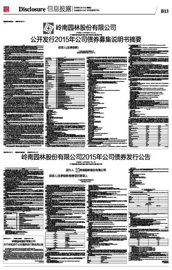 岭南园林股份有限公司公开发行2015年公司债券募集说明书摘要