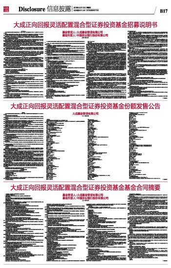 大成正向回报灵活配置混合型证券投资基金份额发售公告