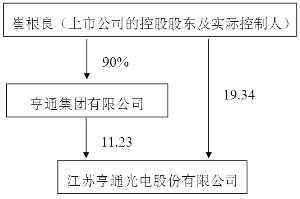 股票简称:亨通光电 股票代码:600487 江苏亨通光电股份有限公司 简式权益变动报告书 上市公司名称:江苏亨通光电股份有限公司 股票上市地点:上海证券交易所 股票简称:亨通光电 股票代码:600487 信息披露义务人名称:崔根良 住所:江苏省苏州市吴江区七都镇 通讯地址:江苏省苏州市吴江区中山北路2288号 股份变动性质:增加 签署日期:二〇一五年六月十七日 信息披露义务人声明 一、信息披露义务人是根据《中华人民共和国证券法》、《上市公司收购管理办法》、《公开发行证券的公司信息披露内容与格式准则第15号—权益变动报告书》及其他相关法律、法规及部门规章的有关规定编写本报告书。 二、信息披露义务人签署本报告已获得必要的授权和批准,其履行亦不违反信息披露义务人章程或内部规则中的任何条款,或与之相冲突。 三、依据《中华人民共和国证券法》、《上市公司收购管理办法》的规定,本报告书已全面披露信息披露义务人在江苏亨通光电股份有限公司拥有权益的股份变动情况。 四、截至本报告书签署之日,除本报告书披露的信息外,上述信息披露义务人没有通过其他任何方式增加或减少其在江苏亨通光电股份有限公司拥有权益的股份。 五、本次权益变动是根据本报告所载明的资料进行的。信息披露义务人没有委托或者授权其他任何人提供未在本报告书列载的信息和对本报告书做出任何解释或者说明。 第一节 释义 在本报告书中,除非另有说明,下列简称具有如下含义: ■ 第二节 信息披露义务人简介 一、信息披露义务人基本情况 姓名:崔根良 曾用名:无 性别:男 国籍:中国 身份证号码:3205251958******** 住所:江苏省苏州市吴江区七都镇 通讯地址:江苏省苏州市吴江区中山北路2288号 邮编:215200 是否取得其他国家或者地区的居留权:否 二、信息披露义务人在境内、境外其他上市公司拥有权益的股份达到或超过该公司已发行股份5%的情况 截止本报告书签署之日,信息披露义务人不存在在境内、境外其他上市公司拥有权益的股份达到或超过该公司已发行股份5%的情况。 第三节 权益变动目的和后续计划 一、本次权益变动目的 本次权益变动是信息披露义务人加强对上市公司实际控制的需要。 二、信息披露义务人的后续持股计划 截至本报告签署日,信息披露义务人不排除在未来12个月内继续增持亨通光电股份的可能性,且本次从亨通集团处受让的股份自转让完成之日起六个月内不减持。 若增持上市公司股份,信息披露义务人将按照《证券法》、《收购办法》及其他相关法律法规的要求,履行相关信息披露义务及审批程序。 第四节 权益变动方式 一、信息披露义务人持有上市公司股份数量及变动情况 本次权益变动前,信息披露义务人不直接持有上市公司的股份。 本次权益变动完成后,信息披露义务人将直接持有80,000,000股亨通光电的股份,占亨通光电已发行股份的19.34%。 二、股份转让协议的主要内容 亨通集团与崔根良于2015年6月16日签署了《股份转让协议》,主要内容如下: 1、协议当事人: 甲方:亨通集团有限公司 乙方:崔根良 2、转让股份的数量和比例 转让股份数量:8,000万股,占上市公司总股本的19.34% 3、转让股份性质:无限售流通股 4、转让价款:168,000万元 5、股份转让的支付对价:现金。 6、转让价款及支付 本次转让价款168,000万元,乙方应当自协议生效之日起一年内支付至甲方账户。 7、违约责任 任何一方出现违反本协议约定的行为导致本协议无法履行,除应继续履行、赔偿交易对方因此而致的经济损失外,还必须向交易对方支付2,000万元的违约金。而交易对方在获得经济赔偿和违约金的同时,有权终止本协议的履行。 8、税收和费用 除非各方另行一致同意,各方应依法承担其各自因本次交易产生的税费。 9、生效时间 各方同意本协议由甲乙双方签署本协议之日生效。 三、股份权利限制情况 截至本报告书签署日,拟受让的上市公司8,000万股股份不存在任何质押、冻结等权利受限制的情形。 四、本次权益变动涉及上市公司控制权变动的情况 本次权益变动将会导致上市公司的控制股东发生变化,但上市公司的实际控制人不会发生变化。本次权益变动后,上市公司与控股股东、实际控制人产权及控制关系如下: ■ 第五节 前六个月内买卖上市交易股份的情况 自本报告书签署日起的前六个月内,信息披露义务人不存在通过证券交易所的集中交易买卖上市公司股份的情形。 第六节 其他重大事项 截至本报告书签署之日,信息披露义务人已按有关规定对本次权益变动的相关信息进行了如实披露,不存在根据法律适用以及为避免对本报告书内容产生误解应当披露而未披露的其他重大信息。 第七节 备查文件 1、信息披露义务人的身份证明文件 ; 2、亨通集团与信息披露义务人签署的《股份转让协议》。 信息披露义务人声明 本人承诺本报告不存在虚假记载、误导性陈述或重大遗漏,并对其真实性、准确性、完整性承担个别和连带的法律责任。 信息披露义务人:崔根良 签署日期:2015年6月17日 附表:简式权益变动报告书 简式权益变动报告书 ■ 信息披露义务人名称:崔根良 日期:2015年6月17日 股票简称:亨通光电 股票代码:600487 江苏亨通光电股份有限公司 简式权益变动报告书 上市公司名称:江苏亨通光电股份有限公司 股票上市地点
