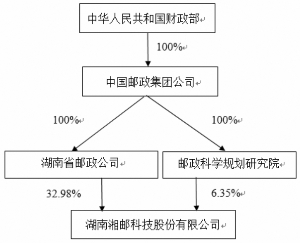 证券代码:600476 证券简称:湘邮科技 湖南湘邮科技股份有限公司 简式权益变动报告书 上市公司名称:湖南湘邮科技股份有限公司 股票上市地点:上海证券交易所 股票简称:湘邮科技 股票代码:600476 信息披露义务人:湖南省邮政公司 住所: 湖南省长沙市雨花区东二环一段710号 通讯地址:湖南省长沙市雨花区东二环一段710号 股份变动性质:减少 签署日期:2015年6月18日 信息披露义务人声明 1、本报告书依据《中华人民共和国公司法》、《中华人民共和国证券法》、《上市公司收购管理办法》、 《公开发行证券的公司信息披露内容与格式准则第15号—权益变动报告书》及其他相关法律、法规和部门规章的有关规定编写。 2、信息披露义务人签署本报告书已获得必要的授权和批准,其履行亦不违反信息披露义务人章程或内部规则中的任何条款,或与之相冲突。 3、根据《中华人民共和国公司法》、《中华人民共和国证券法》、《上市公司收购管理办法》的规定,本报告书已全面披露了信息披露义务人在湖南湘邮科技股份有限公司中拥有权益的权益变动情况。 4、截至本报告书签署之日,除本报告书披露的信息外,信息披露义务人没有通过任何其他方式增加或减少在湖南湘邮科技股份有限公司中拥有权益的股份。 5、本次权益变动是根据本报告所载明的资料进行的,除本信息披露义务人外,没有委托或者授权其他人提供未在本报告中列载的信息和对本报告做出任何解释或者说明。 6、本次股权无偿划转尚需中国证券监督管理委员会豁免北京中邮资产管理有限公司对湘邮科技履行要约收购义务。 7、信息披露义务人承诺本报告书不存在虚假记载、误导性陈述或重大遗漏,并对其真实性、准确性和完整性承担个别和连带的法律责任。 释义 本报告书中,除非文意另有所指,下列简称具有如下特定含义: ■ 第一章 信息披露义务人介绍 一、信息披露义务人基本情况 公司名称:湖南省邮政公司 注册地址:湖南省长沙市雨花区东二环一段710号 注册资本:142575万元 法定代表人:徐茂君 营业执照注册号码:430000000010025 企业类型:全民所有制 经营范围:国内报刊发行、销售(有效期至2015年7月31日);代办电信、电信增值业务(在许可证核定的范围内经营,有效期至2018年7月10日);预包装食品、乳制品(含婴幼儿配方奶粉)批发兼零售(有效期至2015年11月7日);国产酒类批发(有效期至2016年1月14日);邮政储蓄代理;国内国际汇兑;国内、国际函件;国内、国际包件(含直通包裹);代理国内、国际特快专递;机要业务;邮资凭证销售;邮政礼仪;电子商务;邮政媒体广告;邮送广告;信息服务;集邮品开发、销售;各类邮政代理业务;农业生产资料(限面向农村以连锁经营方式)、日用品配送、销售(以上涉及行政许可的,凭本企业有效许可证书经营)。 经营期限:长期 税务登记证号码:43011171219048X 通讯地址:湖南省长沙市雨花区东二环一段710号 邮 编: 410016 二、信息披露义务人的董事及其主要负责人介绍 ■ 三、信息披露义务人在境内、境外其他上市公司中拥有权益的股份达到或超过该公司已发行股份5%的情况: 截止本报告签署之日,湖南省邮政公司无在境内、境外其他上市公司中拥有权益的股份达到或超过该公司已发行股份5%的情况。 第二章 本次权益变动的目的 一、本次权益变动的目的 为实现在同一法人主体内对全网资源、业务经营等进行统一管理,加强集团管控,进一步提高管理效率,中邮集团研究决定将集团公司对各省邮政公司的管理体制,由母子公司体制调整成总分公司体制(以下简称“法人体制调整”)。 根据集团公司法人体制调整总体工作方案,湖南省邮政公司持有的湖南湘邮科技股份有限公司股份将划转至集团公司全资子公司北京中邮资产管理有限公司。前述总体工作方案已经得到财政部《财政部关于中国邮政集团公司实施法人体制调整有关问题的复函》(财建函 [2015]1号)的批准。 本次股份划转,有利于中邮集团进一步整合资产,提升管理效率,优化资源配置,增强资本实力,实现国有资产的保值增值。 二、在未来12 个月内的持股计划 在未来的12个月内,信息披露义务人暂无对湘邮科技增持股份的计划。如湖南邮政作出增持湘邮科技股份的决定,将按照相关法律、法规的要求进行披露。 第三章 本次权益变动的方式 一、 信息披露义务人控制上市公司股份数额及比例 截至本报告书签署之日,湖南省邮政公司持有湘邮科技53,128,388股,占公司总股本的32.98%,为公司控股股东。 二、 本次权益变动方式 根据湖南省邮政公司于2015年6月17日与中邮资产签署的《湖南湘邮科技股份有限公司国有股份无偿划转协议》,本次权益变动采取无偿划转的方式,即湖南邮政将其持有的湘邮科技53,128,388股国有股份,无偿划转给中邮资产。 三、无偿划转协议的主要内容 (一)本次收购的方式 本次收购采取无偿划转的方式。 (二)协议的主要内容 2015 年6月17日,湖南省邮政公司与中邮资产签署《股份无偿划转协议》。主要内容如下: 划出方:湖南省邮政公司 划入方:北京中邮资产管理有限公司 鉴于划出方持有湖南湘邮科技股份有限公司(以下简称“湘邮科技”)53,128,388股股份(占湘邮科技32.98%),双方经过友好协商,根据《企业国有产权无偿划转管理暂行办法》的规定,就划出方将其持有的湘邮科技32.98%股份无偿划转给划入