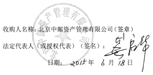 证券代码:600476 证券简称:湘邮科技 湖南湘邮科技股份有限公司 收购报告书摘要 上市公司名称:湖南湘邮科技股份有限公司 股票上市地点:上海证券交易所 股票简称:湘邮科技 股票代码:600476 收购人名称:北京中邮资产管理有限公司 公司住所:北京市西城区金融大街3号,甲3号13层甲3-1301 通讯地址:北京市西城区金融大街3号,甲3号13层甲3-1301 签署日期:二〇一五年六月 收购人声明 一、本报告书摘要依据《中华人民共和国证券法》、《上市公司收购管理办法》、《公开发行证券的公司信息披露内容与格式准则第16 号——上市公司收购报告书》等相关法律法规编写。 二、依据《中华人民共和国证券法》、《上市公司收购管理办法》的规定,本报告书摘要已全面披露收购人在湖南湘邮科技股份有限公司拥有权益的股份。截至本报告书摘要签署之日,除本报告书披露的持股信息外,收购人未通过任何其他方式在湖南湘邮科技股份有限公司拥有权益。 三、收购人签署本报告书摘要已获得必要的授权和批准,其履行亦不违反收购人公司章程或内部规则中的任何条款,或与之相冲突。 四、本次收购已经获得中华人民共和国财政部的批准,尚需取得中国证券监督管理委员会豁免收购人要约收购义务的批准。 五、本次收购是根据本报告书摘要所载明的资料进行的。除收购人和所聘请的专业机构外,没有委托或授权任何其他人提供未在本报告书中列载的信息和对本报告书做出任何解释或者说明。 第一节 释义 在本报告书中,除非文义另有所指,下列简称具有如下含义: ■ 第二节 收购人介绍 一、收购人基本情况 ■ 二、收购人的产权及控制关系 (一)收购人的股份结构 截至本报告书签署日,中邮资产的股份结构如下图所示: ■ (二)中邮集团控制的其他重要企业情况 截至本报告书摘要签署日,除本公司外,中邮集团控制的其他重要企业情况如下: ■ (三)中邮资产控制的企业情况 截至本报告书摘要签署日,中邮资产不存在控制其他企业的情况。但根据中邮集团法人体制调整方案,中邮资产目前正在无偿接收中邮集团原各省邮政公司持有的部分公司的股权/股份,截至本报告书摘要签署日,上述股权/股份的划转尚未完成。 三、收购人从事的主要业务及最近三年的财务状况 (一)收购人从事的主要业务 本公司主要从事资产及投资管理业务,报告期内主要经营活动为金融街办公楼的管理和出租以及自有资金进行投资。 (二)收购人最近三年财务状况的简要说明 经众环海华会计师事务所审计,中邮资产最近三年财务状况如下: 单位:万元 ■ 四、收购人最近五年受行政处罚、刑事处罚、民事诉讼或仲裁情况 (一)最近五年受行政处罚、刑事处罚情况 中邮资产最近五年未受过行政处罚(与证券市场明显无关的除外)、刑事处罚。 (二)最近五年涉及的与经济纠纷有关的重大民事诉讼或者仲裁情况 中邮资产最近五年无涉及与经济纠纷有关的重大民事诉讼或者仲裁情况。 五、收购人董事、监事及高级管理人员情况 截至本报告书摘要签署日,中邮资产董事、监事及高级管理人员的基本情况如下: ■ 中邮资产上述董事、监事及高级管理人员最近五年未受过行政处罚(与证券市场明显无关的除外)、刑事处罚、或者涉及与经济纠纷相关的重大民事诉讼或者仲裁。 六、收购人及控股股东、实际控制人控制或持有其他境内外上市公司5%以上股份的情况 (一)收购人控制或持有其他境内外上市公司5%以上股份的情况 截至本报告书摘要签署日,中邮资产未有在境内或境外其他上市公司中拥有权益的股份达到或超过该公司已发行股份5%的情况。 (二)收购人控股股东、实际控制人控制或持有其他境内外上市公司5%以上股份的情况 截至本报告书摘要签署日,中邮集团未有在境内或境外其他上市公司中拥有权益的股份达到或超过该公司已发行股份5%的情况。 第三节 收购决定及收购目的 一、本次收购的目的 为实现在同一法人主体内对全网资源、业务经营等进行统一管理,加强集团管控,进一步提高管理效率,中邮集团研究决定将集团公司对各省邮政公司的管理体制,由母子公司体制调整成总分公司体制(以下简称“法人体制调整”)。 根据中邮集团法人体制调整总体工作方案,湖南省邮政公司持有的湖南湘邮科技股份有限公司股份将划转至中邮集团全资子公司北京中邮资产管理有限公司。前述总体工作方案已经得到财政部《财政部关于中国邮政集团公司实施法人体制调整有关问题的复函》(财建函 [2015]1号)的批准。 本次股份划转,有利于中邮集团进一步整合资产,提升管理效率,优化资源配置,增强资本实力,实现国有资产的保值增值。 二、未来12个月内继续增持上市公司股份或处置已拥有权益的股份的计划 截至本报告书摘要签署之日,中邮资产暂无在未来12个月内对湘邮科技继续增持股份或处置其已拥有权益股份的计划。如中邮资产作出增持或减持湘邮科技股份的决定,将按照相关法律、法规的要求进行披露。 三、收购人作出本次收购决定所履行的相关程序及具体时间 (一)2014年7月1日,中邮集团召开2014年第17次总经理办公会议,原则同意中邮集团和速递物流公司“子改分”的整体工作方案,并明确尽快向财政部报告。8月18日,中邮集团召开2014年第20次总经理办公会议,原则同意“子改分”过程中对