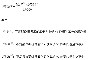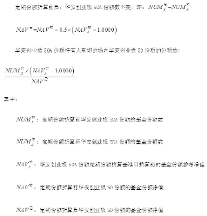 (上接B26版) 2、合并 合并指基金份额持有人将其持有的每1份华安创业板50A份额与1份华安创业板50B份额申请转换成2份华安创业板50场内份额的行为。 (二)份额配对转换的业务办理机构 份额配对转换的业务办理机构见招募说明书或基金管理人届时发布的相关公告。 投资人应当在份额配对转换业务办理机构的营业场所或按其提供的其他方式办理份额配对转换。深圳证券交易所、注册登记机构或基金管理人可根据情况变更或增减份额配对转换的业务办理机构,并予以公告。 (三)份额配对转换的业务办理时间 份额配对转换自华安创业板50A份额、华安创业板50B份额上市交易后不超过6个月的时间内开始办理,基金管理人应在开始办理份额配对转换的具体日期前依照《信息披露办法》的有关规定在指定媒介公告。 份额配对转换的业务办理日为深圳证券交易所交易日(基金管理人公告暂停份额配对转换时除外),具体的业务办理时间见招募说明书或基金管理人届时发布的相关公告。 若深圳证券交易所交易时间更改或实际情况需要,基金管理人可对份额配对转换业务的办理时间进行调整并公告。 (四)份额配对转换的原则 1、份额配对转换以份额申请。 2、申请分拆为华安创业板50A份额和华安创业板50B份额的华安创业板50场内份额必须是偶数。 3、申请合并为华安创业板50场内份额的华安创业板50A份额与华安创业板50B份额必须同时配对申请,且基金份额数必须同为整数且相等。 4、华安创业板50场外份额如需申请进行分拆,须跨系统转托管为华安创业板50场内份额后方可进行。 5、份额配对转换应遵循届时相关机构发布的相关业务规则。 基金管理人、注册登记机构或深圳证券交易所可视情况对上述规定作出调整,并在正式实施前依照《信息披露办法》的有关规定在指定媒介公告。 (五)份额配对转换的程序 份额配对转换的程序遵循届时相关机构发布的最新业务规则,具体见相关业务公告。 (六)暂停份额配对转换的情形 1、基金管理人认为继续接受份额配对转换可能损害基金份额持有人利益时决定暂停份额配对转换的情形。 2、深圳证券交易所、注册登记机构、份额配对转换业务办理机构因异常情况无法办理份额配对转换业务。 3、法律法规、深圳证券交易所规定或经中国证监会认定的其他情形。 发生前述情形之一且基金管理人决定暂停配对转换的,基金管理人应当在家指定媒介刊登暂停份额配对转换业务的公告。 在暂停份额配对转换的情况消除时,基金管理人应及时恢复份额配对转换业务的办理,并依照有关规定在指定媒介上公告。 (七)份额配对转换的业务办理费用 投资人申请办理份额配对转换业务时,份额配对转换业务办理机构可收取一定的佣金,其中包含证券交易所、注册登记机构等收取的相关费用,具体见相关业务公告。 (八)深圳证券交易所、基金注册登记机构调整上述规则,基金合同将相应予以修改,且此项修改无需召开基金份额持有人大会审议。 十三、基金的投资 (一)投资目标 本基金通过被动的指数化投资管理,紧密跟踪标的指数,追求跟踪偏离度和跟踪误差最小化。 (二)投资范围 本基金的投资范围为具有良好流动性的金融工具,包括创业板50指数的成分股及其备选成分股、其他股票(包括中小板、创业板及其他中国证监会核准上市的股票)、权证、股指期货、固定收益资产(国债、央行票据、金融债、企业债、公司债、次级债、地方政府债券、中期票据、可转换债券(含分离交易可转债)、短期融资券、资产支持证券、债券回购、银行存款等)以及法律法规或中国证监会允许基金投资的其他金融工具(但须符合中国证监会相关规定)。 如法律法规或监管机构以后允许基金投资其他品种,基金管理人在履行适当程序后,可以将其纳入投资范围。 基金的投资组合比例为:投资于股票资产的比例不低于基金资产的90%,投资于创业板50指数成分股及其备选成分股的比例不低于非现金基金资产的80%,每个交易日日终在扣除股指期货保证金以后,本基金保留的现金或到期日在一年以内的政府债券投资比例不低于基金资产净值的5%。权证、股指期货及其他金融工具的投资比例依照法律法规或监管机构的规定执行。 如果法律法规对该比例要求有变更的,以变更后的比例为准,本基金的投资范围会做相应调整。 (三)标的指数 本基金的标的指数为创业板50指数。 如果创业板50指数被停止编制及发布,或创业板50指数由其他指数替代(单纯更名除外),或由于指数编制方法等重大变更导致创业板50指数不宜继续作为标的指数,或证券市场上出现其他更合适投资的指数作为本基金的标的指数,本基金管理人可以依据审慎性原则,在充分考虑持有人利益及履行适当程序的前提下,更换本基金的标的指数和投资对象;并依据市场代表性、流动性、与原标的指数的相关性等诸多因素选择确定新的标的指数。若标的指数变更对基金投资无实质性影响(包括但不限于编制机构变更、指数更名等),无需召开基金份额持有人大会,基金管理人可在取得基金托管人同意后变更标的指数,报中国证监会备案并及时公告。 (四)投资策略 本基金为被动式股票指数基金,采用完全复制标的指数的方法跟踪标的指数,即按照标的指数的成份股组成及其权重构建基金股票投资组合,并根据标的指数