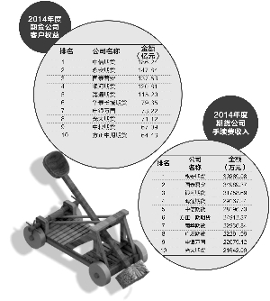 证券时报记者 魏书光 沈宁 2014年期货公司财务数据日前正式对外公布,行业整体维持较快增长,尤其排名靠前的大型公司呈现爆发式增长,期货公司间两极分化加剧。在业内人士看来,伴随各类新品种、各项新业务的快速发展,在融资渠道逐步疏通的背景下,龙头期企有望在未来几年延续高增长。 期货业两极分化明显 根据中期协日前公布的2014年期货公司净利润数据显示,150家期货公司净利共计40.73亿元。值得注意的是,行业内两极分化明显,中信期货、永安期货、国泰君安期货分别以2.8亿元、2.78亿元、1.9亿元排名前三,前十位净利润合计16.9亿元,接近全行业利润的一半,同比大幅增长。另一方面,去年有26家公司出现亏损。 在客户保证金方面,期货全行业保证金总量为2742.72亿元,券商系成为最大赢家。中信期货以186.2亿元高居榜首,永安期货、国泰君安期货分别以147.8亿元、137.5亿元位居第2名、第3名,银河期货、海通期货的客户权益分别为120.8亿元、115.2亿元。 一家期货公司老总表示,期货行业仍然有巨大的发展空间,现在资管业务放开,交叉牌照放行,期货公司可以发挥的空间很大。但目前需要放开思路,不能仅仅在商品市场打转。 但是,期货行业2742亿元的资金规模,相比于A股市场总市值70万亿来说,完全不值一提。这也是国内金融期货成交额占比迅速攀升,期货市场、期货公司迎来新一轮洗牌的重要原因。 从最新情况看,在金融期货带动下,国内期货市场今年以来发展势头迅猛。据业内人士介绍,5月底国内期市盘中保证金规模已经突破4500亿元,不少券商系期货公司保证金规模实现翻倍增长,龙头企业中信期货保证金规模已经突破300亿元。 新模式推动高增长 高增长除了受益市场整体份额提高,很多大型公司在期货新业务、混业新格局带动下形成自身发展的新模式,为这样的增长提供不断的动力。 海通期货总经理徐凌表示,期货行业相对前几年有了长足进步,行业规模整体扩大、品种增加,公司之间两极分化越来越明显。未来排名靠前的大型公司借助市场创新和转型发展的契机,可能会获得更多机会。 “去年以来,资产管理、风险管理、国际化这三块相继放开,包括互联网运用对大型公司都是很好的机遇。这几个新板块2014年刚起步,2015年会有相当规模增长。尤其很多券商系公司,更加适应市场发展趋势,把更多精力放在了创新业务上。”徐凌说。 据介绍,海通期货近期已经申报成立香港子公司,迈出国际化重要一步,风险管理子公司海通资源去年成立后,于今年逐步开展业务。徐凌预计,海通期货2015年将有50%以上增长,“创新业务是资本推动业务,未来两到三年,随着期货公司融资渠道打开,将会大踏步增长。” 融资渠道打开让期货公司进一步高速发展成为可能。除首发(IPO)上市外,发行次级债也成为期货公司增资新途径。近期,招金期货、东证期货已利用次级债融资,天风期货前不久也向股东天风证券成功借入次级债。 本版导读: