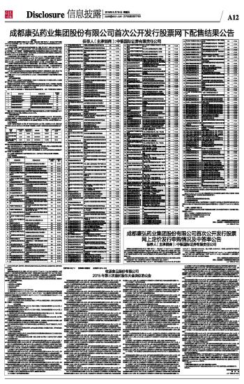 成都康弘药业集团股份有限公司首次公开发行股票网下配售结果公告