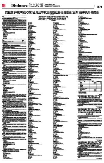 交银施罗德沪深300行业分层等权重指数证券投资基金(更新)招募说明书摘要