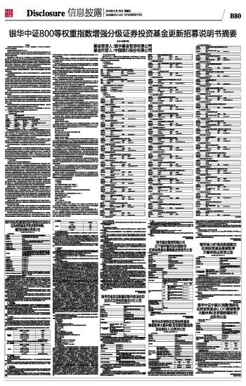 银华中证800等权重指数增强分级证券投资基金更新招募说明书摘要
