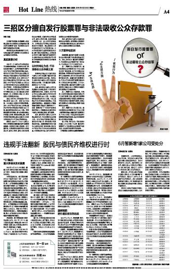 三招区分擅自发行股票罪与非法吸收公众存款罪 2015-06-20 来源:证券时报网 作者:肖飒 张超