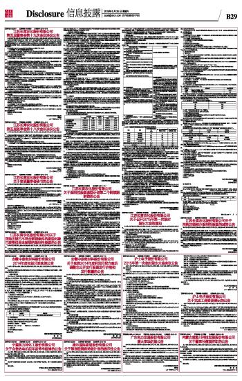 注:请在“同意”、“反对”或“弃权”栏之一打“√”,都不打或多打“√”视为弃权。 如果股东不作具体指示,股东代理人是否可以按自己的意思表决: 1、是 □ 2、否 □ 委托人签名(或盖章): 委托人身份证或营业执照号码: 委托人深圳股票帐户卡号码: 委托人持股数: 受托人签名: 委托日期:2015 年 月 日 证券代码:002391 证券简称:长青股份 公告编号:2015-049 江苏长青农化股份有限公司关于 回购注销部分限制性股票的减资公告 本公司及董事会全体成员保证信息披露的内容真实、准确、完整,没有虚假记载、误导性陈述或重大遗漏。 江苏长青农化股份有限公司(以下简称“公司”)于2015年6月19日召开第五届董事会第十九次会议,审议通过了《关于回购注销已不符合解锁条件的激励对象已获授但尚未解锁的限制性股票的议案》。由于公司限制性股票激励对象高冬书离职,根据《江苏长青农化股份有限公司限制性股票激励计划(草案修订稿)》的相关规定,公司拟对其现持有的已获授尚未解锁的31,500股限制性股票进行回购注销。因此,公司总股本由362,169,680股减少至362,138,180股。 公司本次回购注销部分限制性股票将涉及注册资本减少,根据《中华人民共和国公司法》等相关法律、法规的规定,公司特此通知债权人,债权人自本公告之日起45日内,有权要求公司清偿债务或者提供相应的担保。 债权人如果提出要求公司清偿债务的,应根据《中华人民共和国公司法》等相关法律法规的规定,向公司提出书面请求,并随附相关证明文件。 特此公告。 江苏长青农化股份有限公司 董事会 2015年6月20日 本版导读: