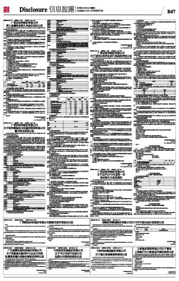 证券代码:002309 证券简称:中利科技 公告编号:2015-077 中利科技集团股份有限公司 关于重大事项继续停牌的公告 本公司及董事会全体成员保证本公告内容真实、准确和完整,没有任何虚假记载、误导性陈述或者重大遗漏。 中利科技集团股份有限公司(以下简称"公司")正在筹划重大事宜,经公司向深圳证券交易所申请,公司股票(股票简称:中利科技,股票代码:002309)已于2015年6月2日开市起停牌(详见公告编号:2015-071),停牌期间,公司于2015年6月9日、2015年6月16日分别发布了《关于重大事项继续停牌的公告》(公告编号2015-073、2015-076)。 截止本公告日,因相关事项仍在积极筹划中,尚存在不确定性,为保证信息披露公平,保护中小投资者利益,根据 《深圳证券交易所股票上市规则》的有关规定,经申请,公司股票自2015年6月24日开市起继续停牌。公司债(简称:11中利债,代码:112094)不停牌。待相关事项确定后,公司将予以及时披露并申请复牌,敬请广大投资者注意投资风险。 特此公告。 中利科技集团股份有限公司 2015年6月23日 万家基金管理有限公司关于增加 上海银行为万家基金代销机构的公告 根据万家基金管理有限公司(以下简称"本公司")与上海银行股份有限公司(以下简称 "上海银行")签订的代销协议,上海银行自2015年6月24日起代理本公司旗下万家瑞兴灵活配置混合型证券投资基金(基金简称:万家瑞兴,基金代码:001518 )的销售业务。 投资者可在上海银行办理基金的开户、认购、申购、赎回等业务,业务办理的具体事宜请遵从上海银行的相关规定。投资者可以通过以下途径咨询有关详情: 1、上海银行股份有限公司 客户服务电话: 95594 网址:www.bankofshanghai.com 2、万家基金管理有限公司 客户服务电话:95538转6、400-888-0800、(021)68644599 客服传真:021-38909778 网址:www.wjasset.com 风险提示:投资者欲了解上述基金详细情况,请参看该基金的《基金合同》和《招募说明书》,基金管理人不承诺基金投资最低收益、也不保证基金投资一定赢利,请投资者在充分考虑风险的情况下谨慎作出投资决策。 特此公告。 万家基金管理有限公司 二〇一五年六月二十四日 本版导读: