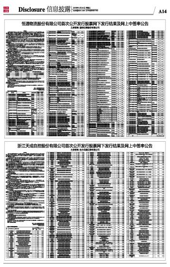 恒通物流股份有限公司首次公开发行股票网下发行结果及网上中签率公告