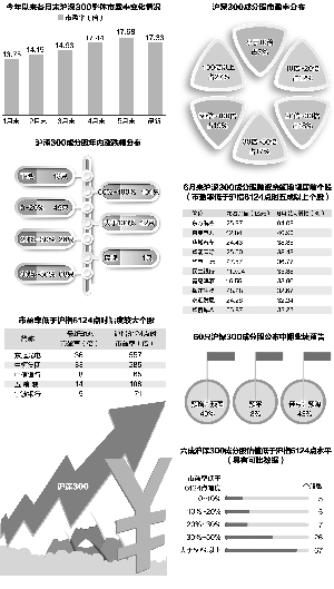 市盈率低于历史高点五成以上沪深300成分股排名 代码 简称 年内 涨跌幅 (%) 年内 换手率 (%) 动态 市盈率 (倍) 2007年 10月16日 市盈率 (倍) 600016 601628 601998 000776 600837 601939 600585 600104 601398 601166 601088 000895 601318 600048 600036 600000 600015 000001 601988 600809 600208 600600 601328 000024 601169 民生银行 中国人寿 中信银行 广发证券 海通证券 建设银行 海螺水泥 上汽集团 工商银行 兴业银行 中国神华 双汇发展 中国平安 保利地产 招商银行 浦发银行 华夏银行 平安银行 中国银行 山西汾酒 新湖中宝 青岛啤酒 交通银行 招商地产 北京银行 -13.01 -8.19 -5.90 -2.45 -1.95 -0.15 2.96 5.17 5.75 8.78 9.30 10.13 10.33 10.39 11.15 11.46 11.66 13.62 14.22 16.34 17.53 18.17 19.62 21.11 24.79 208.71 64.64 68.43 224.61 461.85 409.41 237.23 79.29 27.88 296.10 79.93 209.78 376.02 381.01 143.57 236.40 259.89 204.35 81.59 218.40 248.84 137.67 186.33 391.05 274.01 6.01 17.86 8.20 19.02 16.54 6.27 17.12 8.33 6.17 5.62 18.81 20.03 9.43 24.43 6.75 6.96 8.09 9.45 7.61 26.77 114.89 32.01 7.67 31.19 7.22 42.31 61.80 65.17 114.04 38.52 31.13 69.78 39.72 32.25 40.71 90.47 50.38 64.62 120.82 46.55 45.85 43.75 35.04 29.30 55.97 629.75 67.55 38.22 104.26 46.10 公布中期业绩预告沪深300成分股排名 代码 简称 动态 市盈率 (倍) 所属行业 市盈率 (倍) 中期业绩 预告类型 中期预计 增幅中值 (%) 002252 002202 000402 002399 002416 002475 002292 002450 002415 000156 002129 002008 002470 002230 002594 002294 002400 002465 002603 002142 002038 002065 002304 002081 002375 上海莱士 金风科技 金 融 街 海 普 瑞 爱 施 德 立讯精密 奥飞动漫 康 得 新 海康威视 华数传媒 中环股份 大族激光 金 正 大 科大讯飞 比 亚 迪 信 立 泰 省广股份 海格通信 以岭药业 宁波银行 双鹭药业 东华软件 洋河股份 金 螳 螂 亚厦股份 53.59 53.78 13.77 42.23 96.72 72.36 149.76 41.49 42.56 115.50 419.13 112.84 28.56 178.39 317.26 25.44 93.52 399.03 53.54 9.31 38.72 77.21 11.98 32.43 48.81 61.52 110.38 45.71 61.52 45.09 93.41 103.79 73.67 157.09 103.79 93.41 93.41 73.67 157.09 26.74 61.52 103.79 81.19 61.52 6.76 61.52 157.09 26.07 32.09 32.09 预增 预增 预增 预增 预增 预增 预增 预增 预增 预增 预增 预增 预增 预增 预增 预增 预增 预增 预增 预增 预增 预增 预盈 预增 预增 325.00 225.00 155.00 145.00 90.06 70.00 50.00 45.00 45.00 43.83 35.54 35.00 30.00 25.00 21.99 20.00 20.00 20.00 17.50 15.00 15.00 15.00 10.00 10.00 10.00 (专题数据由证券时报中心数据库提供,数据来源于上市公司公告,若有出入,请以公告为准) 本版导读: