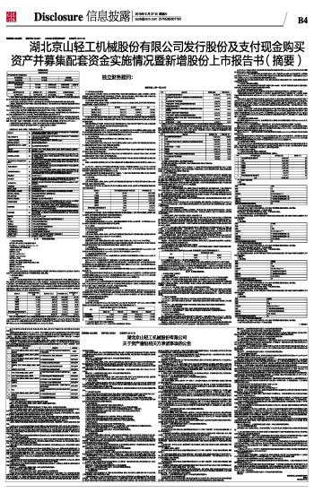 湖北京山轻工机械股份有限公司发行股份及支付现金购买资产并募集配套资金实施情况暨新增股份上市报告书(摘要)