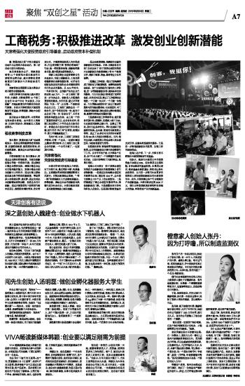 继“发现双创之星”大型主题系列活动在北京清华大学启动后,第二站活动日前在天津启动。 来自国务院办公厅、国家发改委等13个部委和天津市政府的主要领导出席活动,就天津特色发展政策进行解读并与天津创客进行交流。 国家税务总局副局长张志勇表示将不断优化税制改革。 天津市科委主任赵海山就天津市科委、市教委、市财政局等10个部门出台的20余个针对“大众创业,万众创新”的相应政策文件和落实办法进行解读,并表示天津将强化天使投资政府引导基金,依靠创新,调动大众创新热情。 该活动由中国政府网、中国网络电视台联合发起,由天津市人民政府、证券时报协办,滨海新区人民政府承办。 税收商事制度改革 张志勇在“发现双创之星”活动现场表示,税务总局将继续推进税制改革,完善税收政策,规范税收管理,优化纳税服务,激发全社会的创业和创新潜能。 在税收政策方面,张志勇表示,将通过全面深化税制改革,为创业创新创造公平统一的税收环境;通过降低小微企业税收负担,增强小微企业应对市场风险的能力,发挥小微企业创业创新主力军作用;通过对重点群体创业就业给予税收优惠政策,帮助更多人实现创业梦、就业梦;通过支持企业创新驱动发展战略,促进企业自主创新;通过大幅取消和下放税收行政审批项目,规范税收增收管理,优化管理方式,大幅度降低纳税人的办税成本;在全国持续开展“便民办税春风”行动,统一税收服务标准,创新纳税服务手段,最大限度地便利纳税人。 国家工商总局企业监管局局长马夫也表示,为助力创新创业,工商总局将继续深化商事制度改革,对所有的创客包括其他的创办企业者提供便利的开办企业的服务。从2014年至今,一年多的时间,全国新产生的企业已经达到485万户,下一步工商部门将进一步为各企业、创客进入市场提供更便利的服务。今年年底,登记环节将推出“三证一号”,以后每一个创客创办企业之后,工商部门就给企业一个终生号,这个号码具有唯一性,相当于企业有了唯一的“身份证号”,不用再到税务和质监去办理,由工商一个部门直接受理便可以。企业有生有死,根据工商总局对几十年的企业主体的分析,发现企业在创业的前三年非常关键,前三年的“死亡率”非常高,到第四年、第五年慢慢就稳定了。 马夫介绍,对此,工商部门采取信用管理,对每一个企业,一定要注重创立最初时候的效率,在工商部门会记录企业的信誉,一个公司不做了,一定要及时注销。 天津将强化 天使投资政府引导基金 天津市科委主任赵海山介绍说,对于天津而言,最近利好不断,机遇叠加。京津冀协同发展规划纲要即将正式发布;自贸区政策效应显著;“一带一路”和滨海新区五大战略机遇叠加。依靠创新,调动全社会的创新创业热情已成为社会共识。天津市政府采取一系列政策措施助力创业创新。 一是出台政策措施,构建较为完善的创新创业支持体系。市委、市政府各有关部门分别出台了《关于发展众创空间推进大众创新创业的政策措施》等22个政策文件,提供了政策、资金、服务等全方位的保障。 二是健全工作机制。现在已经构建形成了高效有力的政策制度,保障和组织推动体系,各个方面借助自己原有的工作职能,进一步围绕创新创业等,提供各种支持和服务,而且在区县也已经形成了这样的体系。此外面向区县,建立了工作联席会议制度,一个月做一次点评,一个月做一次推动,而且围绕众创空间专门设立了政府的服务专员和流动服务站,在众创空间,专门有政府的服务窗口解决创业过程中政策实施、政策咨询等相关的服务问题。 三是搭建双创工作网络平台,提升服务的及时性、便捷性,实现线上线下互动。在众创空间除建立窗口外,还建立了网站,及时回应各种咨询。同时还组织了投融资的机构、企业家,高校的专家投资人等等,成立了50多位专业的咨询专家团队和200多人的创业导师队伍。另外,领军企业家、天使投资人等也会深入到众创空间,为创客直接进行指导。 四是强化宣传,营造浓厚的创新创业氛围。全市的创新创业大赛已经连续举行了几年。从今年年初开始,在天津各个区县、各个行业又做了一个持续整年的系列化活动,目前已经得到了大家的响应,效果非常好。 赵海山对天津市《关于发展众创空间推进大众创新创业的政策措施》进行详细解读:一是提出加快构建众创空间的原则和目标,提出到2016年,全天津市要建立100个以上的众创空间。二是明确提出了建立众创空间服务平台,降低创新创业门槛。三是鼓励支持大学生和科技人员创业。四是强化财政资金的支持引导,完善各类投融资的服务。五是进一步营造创新创业的氛围,加强工作的组织推动。 赵海山还介绍,下一步,天津市将不断强化天使投资政府引导基金。 他表示,政府在天使项目中的投资资金不会超过50%,但如果项目出现风险,首先由政府的基金补偿。如果项目成功,政府基金会原值退出,将收益让给社会投资者,从而进一步吸引社会更多的投资进入到初创期创新创业的天使投资当中。此外,天津将建立各个行业领域的产业创新基金。天津市政府出资5000万元,现在正争取国家发改委和科技部相关的资金,争取形成产业的创新基金。 本版导读: