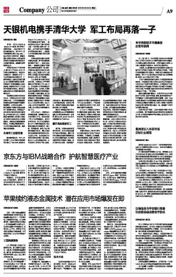 天银机电携手清华大学 军工布局再落一子
