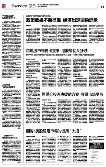 国家统计局新闻发言人盛来运表示 政策效果不断显现 经济出现回稳迹象 2015-07-07 来源:证券时报网 作者: