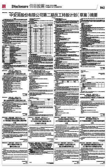 特别提示 1、中安消股份有限公司(以下简称“中安消”,“本公司”)第二期员工持股计划系依据《中华人民共和国公司法》、《中华人民共和国证券法》、《关于上市公司实施员工持股计划试点的指导意见》等有关法律、行政法规、规章、规范性文件和《公司章程》的规定制定。 2、本员工持股计划筹集资金总额上限为2,000万元,资金来源为员工合法薪酬、自筹资金以及法律、法规允许的其他方式。 3、本员工持股计划设立后委托国金证券股份有限公司成立国金中安消2号集合资产管理计划进行管理,国金中安消2号集合资产管理计划主要投资范围为购买和持有本公司股票。 4、国金中安消2号集合资产管理计划份额上限为1.2亿份,按照4:1:1设立优先级A、中间级B和风险级C。优先级A份额和中间级B份额的初始配比不超过4:1,风险级C份额和中间级B份额的初始配比不超过1:1。集合计划优先级A份额、中间级B份额与风险级C份额的资产将合并运作。本员工持股计划筹集资金全额认购国金中安消2号集合资产管理计划的风险级C份额;公司董事长涂国身先生出资不超过2,000万元认购国金中安消2号集合资产管理计划中间级B份额。 优先级A:按“国金中安消2号集合资产管理计划资产管理合同”的约定享有预期年化收益率的份额。集合计划收益分配和终止清算时,资产分配顺序位于中间级B份额和风险级C份额之前。 中间级B:按“国金中安消2号集合资产管理计划资产管理合同”的约定享有预期年化收益率的份额。中间级B份额以参与金额为限对优先级A份额的本金及预期年化收益承担有限补偿责任,集合计划收益分配和终止清算时,资产分配顺序位于优先级A份额之后,位于风险级C份额之前。 风险级C:按“国金中安消2号集合资产管理计划资产管理合同”约定对优先级A份额本金和预期收益、中间级B份额本金和预期收益承担补偿责任的份额。同时根据产品运作情况享有扣除优先级A份额和中间级B份额的本金和预期收益及管理费、托管费等费用后的全部剩余资产和收益的分配。集合计划收益分配和终止清算时,资产分配顺序位于优先级A份额和中间级B份额之后。 5、公司控股股东深圳市中恒汇志投资有限公司、实际控制人涂国身先生、风险级C份额持有人共同为为国金中安消2号集合资产管理计划优先级A份额、中间级B份额持有人本金及预期收益的实现提供不可撤销的连带补偿责任。 6、国金中安消2号集合资产管理计划以二级市场购买股票等法律法规许可的方式取得并持有标的股票。股东大会通过本员工持股计划后6个月内,国金中安消2号集合资产管理计划通过二级市场购买等法律法规许可的方式完成标的股票的购买。 7、以国金中安消2号集合资产管理计划的规模上限1.2亿元和公司2015年7月8日的收盘价30.91元/股测算,国金中安消2号集合资产管理计划所能购买和持有的标的股票数量上限约为3,882,238股,占公司现有股本总额约为0.30%。 8、公司董事会对本员工持股计划进行审议且无异议后,公司将发出召开股东大会通知,审议本员工持股计划。公司审议本员工持股计划的股东大会将采取现场投票与网络投票相结合的方式。本员工持股计划必须经公司股东大会批准后方可实施。 9、本员工持股计划实施后,将不会导致公司股权分布不符合上市条件要求。 一、释义 除非另有说明,以下简称在本文中作如下释义: ■ 本文中若出现总数与各分项值之和尾数不符的情况,均为四舍五入原因造成。 二、员工持股计划的参加对象及确定标准 (一)参加对象确定的法律依据 本员工持股计划的参加对象系依据《公司法》、《证券法》、《指导意见》等有关法律、法规、规章及《公司章程》的相关规定而确定,公司员工按照依法合规、自愿参与、风险自担的原则参加本员工持股计划。 参加本员工持股计划的范围为公司及下属子公司的董事、监事、高级管理人员及员工,参加对象在公司或下属子公司工作,领取薪酬,并签订劳动合同。 (二)参加对象的确定标准 本员工持股计划的参加对象应符合下述标准之一: 1、公司及下属子公司董事、监事、高级管理人员; 2、公司中层管理人员; 3、其他对公司发展有较高贡献的人员。 以上符合条件的员工遵循依法合规、自愿参与、风险自担的原则参加本员工持股计划,具体参与名单经董事会确定、监事会核实。 (三)员工持股计划的持有人情况 参加本员工持股计划的总人数为18人,任一持有人所持有本员工持股计划份额所对应的标的股票数量不超过公司股本总额的1%。 ■ 三、员工持股计划的资金、股票来源 (一)员工持股计划的资金来源 员工参与本员工持股计划的资金来源为员工合法薪酬、自筹资金以及法律、法规允许的其他方式。 本员工持股计划筹集资金总额上限为2,000万元。 本员工持股计划设立后委托国金证券股份有限公司成立国金中安消2号集合资产管理计划进行管理,国金中安消2号集合资产管理计划主要投资范围为购买和持有本公司股票。 国金中安消2号集合资产管理计划份额上限为1.2亿份,按照4:1:1设立优先级A、中间级B和风险级C。优先级A份额和中间级B份额的初始配比不超过4:1,风险级C份额和中间级B份额的初始配比不超过1:1。集合计划优先级A份额、中间级B份额与风险级C份额的资产将合并运作。本员工持股计划筹集资金全