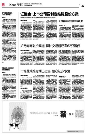 市场最艰难时期已过去 信心初步恢复 2015-07-11 来源:证券时报网 作者:曾福斌
