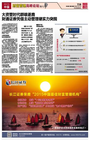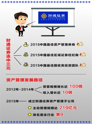 截至2014年末,财通证券的资产管理规模逾700亿元,排名行业前1/3。值得一提的是,财通证券资管主动管理规模达219亿元,规模占比远超行业水平。 大资管时代群雄逐鹿 财通证券凭借主动管理硬实力突围 6月26日,由证券时报主办的“2015年中国最佳财富机构评选”榜单揭晓,财通证券连中三元,获“2015中国最佳资产管理券商”、“2015中国最佳区域证券经纪商”和“2015中国最佳固收类投资团队”三个重量级大奖。财通证券控股子公司——永安期货也在此次评选中一举拿下“2015中国最佳期货资管产品”、“2015中国最佳期货投资咨询机构”、“2015中国优秀期货资管团队”三项殊荣。 从经纪商变身 综合金融服务商 受益于资本市场改革和监管转型,证券行业迎来大发展。在国家建设多层次资本市场的战略下,券商正在积极寻求突破创新,以期在“大资管”时代具备综合性的金融服务能力。 据了解,近年来财通证券坚持“集团化、国际化、上市发展”的战略,已构建起一个涵盖证券经纪、投资银行、资产管理、资本中介、证券自营、期货、基金、跨境业务的证券控股集团,更取得快速发展、颇受瞩目的成果。根据中国证券业协会公布的2014年度证券公司经营业绩排名,截至2014年末,财通证券净资本排名21位,股基交易量排名23位,资产管理业务净收入排名22位。 随着国内经济结构的调整和证券行业创新发展的趋势,财通证券率先对传统的经纪业务模式和服务方式进行改革、创新和转型,紧紧围绕以客户为中心,集中资源精耕细作,为客户提供综合金融解决方案;打造“财智俱乐部”投资顾问品牌,开创专业化、个性化、即时化、智能化和人性化的财富管理服务。截至目前,财通证券经纪业务服务的客户已过百万。 财通证券资管 小荷才露尖尖角 据行业人士介绍,“中国最佳财富机构评选”是获业内高度认可的权威评选活动,广泛关注银行、证券、保险及期货等领域的优秀财富管理机构。而此次财通证券资管凭借出色的投资管理能力一举斩获两项实力大奖,成为行业新秀中“后来居上”的典范。 分析人士指出,作为2015年首家成立的券商资管子公司,财通证券资管成功“逆袭”上位的原因在于出色的主动资产管理能力以及年轻新锐的投研团队优秀的市场把握能力。 据了解,财通证券资管着力于主动管理业务,自2012年到2014年短短2年多的时间,实现了规模增长近100倍、收入增长近10倍的“业内佳话”。截至2014年末,财通证券资管的资产管理规模逾700亿元,排名前1/3。值得一提的是,据中证协公布的统计数据,截至2014年底,券商资管规模为7.97万亿元,主动管理规模仅为6434亿元,占比为8.1%,其中财通证券资管主动管理规模达219亿元,排名位居全行业第9;占比达31%,高出行业近23个百分点。 优秀的投资业绩同时也离不开强大的投研水平和团队实力。据悉,财通证券资管现员工人数已超过100人,近年来从公司战略层面大力向主动管理转型,磨砺和打造了一支视野立体化、能力特色化的专业投研团队,并通过施行“投研销一体化”的市场导向激励机制,在业内率先践行合伙人文化以集聚人才优势。 最接地气的 资管固收团队 事实上,面对大资管时代的激烈角逐,仅做好团队建设、提高投研实力早已不够。每家资管机构都在不断突破创新,着力发展自己独一无二的核心竞争力。如财通证券资管在固定收益方面的投研实力已成为其最大优势之一。 目前,财通证券资管固定收益团队所管理的主动型债券类产品总资产规模超过百亿,取得了业绩和规模的双丰收。资料显示,近年来依托于财通证券在国债承销方面显著的历史业绩、丰富的承销经验,以及在机构投资者领域较高的声誉,财通证券资管发行了“月月福”、“财聚”和“聚富”等系列业绩表现稳健的固收类资管产品,不仅在市场上赢得了良好的声誉和口碑,还形成了独具的差异化核心优势——贴合客户需求的多样化产品设计辅以坚实的投研实力,“接地气”是其最大特色。 Wind数据显示,财通月月福2号、3号普通级,聚富1号风险级的2014年涨幅均跻身同类可比产品前3名。截至7月3日,财通月月福2号、3号普通级, 今年以来净值增长率分别为40.99%、33.89%,稳居同类可比产品前3名。 对于2014年的亮丽表现,财通证券资管固收团队表示,早在2013年底即前瞻性预判了本轮债券牛市,并加大对长久期城投债等品种的配置力度,准确把握住收益率下行带来的投资机会,由此奠定了2014年全年的业绩基础;此外,团队还通过宏观经济形势研判,不仅在三季度经济数据疲弱态势显现后,捕捉到了政策放松阶段利率品种的阶段趋势机会,并且在风险可控的前提下,四季度通过可转债品种分享了权益市场的显著超额收益。 展望后市,财通证券资管固收团队认为,今年下半年债券市场仍存在较好的投资机会,一方面,房地产投资及出口的波动都可能将对经济增长带来不确定性;另一方面,预计CPI在年内应该较难构成风险因素,因此综合经济增长和通胀等因素考虑,政策层面上将有望继续维持宽松的货币政策,从而为债券市场充裕的流动性提供了保证。(CIS) 本版导读: