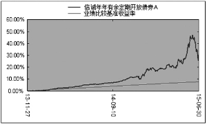 基金管理人:信诚基金管理有限公司 基金托管人:中国银行股份有限公司 报告送出日期:2015年7月20日 §1 重要提示 基金管理人的董事会及董事保证本报告所载资料不存在虚假记载、误导性陈述或重大遗漏,并对其内容的真实性、准确性和完整性承担个别及连带责任。 基金托管人中国银行股份有限公司根据本基金合同规定,于2015年7月17日复核了本报告中的财务指标、净值表现和投资组合报告等内容,保证复核内容不存在虚假记载、误导性陈述或者重大遗漏。 基金管理人承诺以诚实信用、勤勉尽责的原则管理和运用基金资产,但不保证基金一定盈利。 基金的过往业绩并不代表其未来表现。投资有风险,投资者在作出投资决策前应仔细阅读本基金的招募说明书。 本报告中财务资料未经审计。 本报告期自2015年4月1日起至6月30日止。 §2 基金产品概况 ■ §3 主要财务指标和基金净值表现 3.1 主要财务指标 单位:人民币元 ■ 注:1、上述基金业绩指标不包括持有人认购或交易基金的各项费用,计入费用后实际收益水平要低于所列数字。 2、本期已实现收益指基金本期利息收入、投资收益、其他收入(不含公允价值变动收益)扣除相关费用后的余额,本期利润为本期已实现收益加上本期公允价值变动收益。 3.2 基金净值表现 3.2.1 本报告期基金份额净值增长率及其与同期业绩比较基准收益率的比较 信诚年年有余定期开放债券A ■ 信诚年年有余定期开放债券B ■ 3.2.2 自基金合同生效以来基金累计净值增长率变动及其与同期业绩比较基准收益率变动的比较 信诚年年有余定期开放债券A ■ 信诚年年有余定期开放债券B ■ 注:本基金建仓期自2013年11月27日至2014年5月27日,建仓期结束时资产配置比例符合本基金基金合同规定。 §4 管理人报告 4.1 基金经理(或基金经理小组)简介 ■ 注:1.上述任职日期、离任日期根据本基金管理人对外披露的任免日期填写。 2.证券从业的含义遵从行业协会《证券业从业人员资格管理办法》的相关规定。 4.2 管理人对报告期内本基金运作遵规守信情况的说明 在本报告期内,本基金管理人严格按照《证券投资基金法》和其他相关法律法规的规定以及《信诚年年有余定期开放债券型证券投资基金基金合同》、《信诚年年有余定期开放债券型证券投资基金招募说明书》的约定,本着诚实信用、勤勉尽职的原则管理和运用基金财产。本基金管理人通过不断完善法人治理结构和内部控制制度,加强内部管理,规范基金运作。本报告期内,基金运作合法合规,没有发生损害基金份额持有人利益的行为。 4.3 公平交易专项说明 4.3.1 公平交易制度的执行情况 根据中国证监会颁布的《证券投资基金管理公司公平交易制度指导意见》,以及公司拟定的《信诚基金公平交易管理制度》,公司采取了一系列的行动实际落实公平交易管理的各项要求。各部门在公平交易执行中各司其职,投资研究前端不断完善研究方法和投资决策流程,确保各投资组合享有公平的投资决策机会,建立公平交易的制度环境;交易环节加强交易执行的内部控制,利用恒生交易系统公平交易相关程序,及其它的流程控制,确保不同基金在一、二级市场对同一证券交易时的公平;公司同时不断完善和改进公平交易分析系统,在事后加以了严格的行为监控,分析评估以及报告与信息披露。当期公司整体公平交易制度执行情况良好,未发现有违背公平交易的相关情况。 4.3.2 异常交易行为的专项说明 本报告期内,未发现本基金与其它投资组合之间有可能导致不公平交易和利益输送的异常交易。报告期内,未出现参与交易所公开竞价同日反向交易成交较少的单边交易量超过该证券当日成交量5%的交易(完全复制的指数基金除外)。 4.4 报告期内基金的投资策略和运作分析 二季度经济增长较弱,投资、出口延续放缓态势,消费增长平稳,消费物价指数维持较低水平。央行继续实施稳健的货币政策,实施降息二次共50个基点、降准和定向降准各一次,并运用新型数量调节工具,保持流动性适度增长,流动性宽裕。上半年,债市资金面仍宽松,货币市场利率维持低位,债券市场运行平稳,标普全债指数上涨1.2%。2015年,煤炭、有色等产能过剩行业的企业经营仍然较为困难,信用风险仍不容忽视。 二季度,本基金保持较低杠杆水平,配置较高评级的信用债包括城投债和产业债。本基金特别注重信用风险管理,通过严格的内部信用评级体系,甄别信用风险,规避负债率高、经营性现金流持续为负和经营亏损的公司发行的债券,以及信用风险较为突出的行业的债券,如房地产、钢铁、电解铝、煤化工等行业的债券。二季度,股市跌荡起伏,可转债投资策略做了相应调整,减持可转债持仓,兑现大部分可转债投资收益。 4.5 报告期内基金的业绩表现 本报告期基金份额净值A和B增长率分别为7.74%,7.62%,同期业绩比较基准收益率为1.08%,基金表现超越业绩比较基准分别为6.66%,6.54%。 4.6 报告期内基金持有人数或基金资产净值预警说明 本报告期内,本基金未出现连续20个工作日基金资产净值低于五千万元(基金份额持有人数量不满两百人)的情形。 §5 投资组合报告 5.1 报告期末基金资产组合情况 ■ 5.2 报告期末按行业分类的股票投资组合 ■ 5.3 报告期末按公允价值占基金资产净值比例大小排序的前十名股票投资明细 ■ 注:本基金本报告