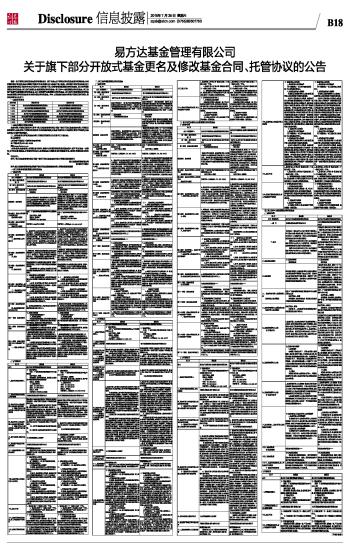 易方达基金管理有限公司关于旗下部分开放式基金更名及修改基金合同、托管协议的公告