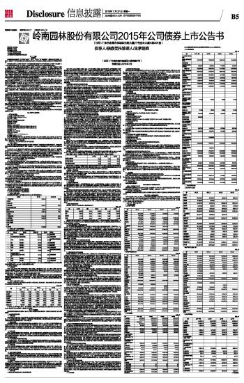 股票简称:岭南园林 股票代码:002717 公告编号:2015-101 岭南园林股份有限公司2015年公司债券上市公告书(住所:广东省东莞市东城区光明大道27号金丰大厦A栋301室) 2015-07-27 来源:证券时报网 作者:
