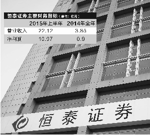 恒泰证券拟转H股上市 “明天系”将再添上市资产 证券时报记者 杨庆婉 日前,恒泰证券在港交所披露招股说明书,暂停了去年以来筹备的A股上市辅导进程,火速转至H股首发(IPO),保荐机构也由广发证券改成交银国际和海通国际联合保荐。 在哈尔滨银行A股上市之后,作为“明天系”肖建华旗下的金融资产,恒泰证券为“明天系”再添上市资产,同时又有望成为“明天系”新的资本运作平台。 早在一年前,恒泰证券就准备在A股IPO,去年2月在内蒙古证监局备案,进入上市辅导期。成立于1992年的恒泰证券前身为内蒙古证券,2002年增资扩股并更名,2008年完成股改。 但以A股的新股发行节奏,恒泰证券等不及了。据内部人士透露,恒泰证券有迫切的融资需求,不希望错过中介业务发展的高速列车,决定转到香港上市。 7月6日,恒泰证券正式在港交所披露招股说明书。从近三年的业绩看,恒泰证券的经纪业务(包括两融)贡献一直都超过50%;其次是自营,贡献占比大约24%~38%之间,然后才是投行和资管业务。 恒泰证券共设66家证券营业部,其中,28家分布在内蒙古;北京、上海、广东、山东、浙江及江苏省等设了22家营业部。 2012年至2014年,恒泰证券总收益及纯收益复合年增长率为61.1%及142.1%。最明显的业绩爆发是今年一季度,临门冲刺加上A股成交量放大的贡献,恒泰证券一季度的收入相当于去年全年的3倍、净利润相当于去年全年的5倍。 招股书显示,恒泰证券2015年一季度实现营收11.07亿元、净利润4.73亿元;2014年全年营收3.85亿元、净利润0.9亿元。统计数据显示,上半年恒泰证券(母公司)营收22.12亿元,净利润10.97亿元。 业内人士表示,资本运作是肖建华及“明天系”所擅长的,恒泰证券转H股上市固然有自身的发展需求,也为“明天系”增添了新的资本运作平台。 按照恒泰证券披露的招股说明书数据,北京西城区国资委持有5.66亿股,持股比例25.79%,是名义上的第一大股东。明天控股与包头华资并列为第二大股东,分别持有恒泰证券20.22%股权。 但实际上,明天控股间接持有包头华资54%的股权,因此“明天系”是恒泰证券的实际控制人,并且明天控股已和另外两家同样持股20.22%的中昌恒远与上海怡达订立了一致行动协议。 本版导读: