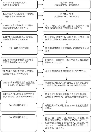 (上接B98版) 3、出资关系图 ■ 4、主要合伙人基本情况 上海君丰的主要合伙人为谢爱龙。谢爱龙的基本情况如下: ■ 5、最近三年主营业务情况和主要财务指标 上海君丰自成立以来,一直从事对外股权投资,最近三年主要财务指标如下: 单位:万元 ■ 6、下属企业情况 截至本报告书签署日,上海君丰除持有永乐影视股权外,持有其他公司股权情况如下: 单位:万元 ■ 7、私募基金备案情况 上海君丰已根据《证券投资基金法》和《私募投资基金监督管理暂行办法》等法律法规的要求,在中国证券投资基金业协会进行了备案登记,取得了《私募投资基金证明》。 (十三)宁波安丰众盈创业投资合伙企业(有限合伙) 1、基本情况 ■ 2、历史沿革 (1)2010年1月,合伙企业设立 2010年1月27日,浙江安丰创业投资有限公司与浙江安丰进取创业投资有限公司《合伙协议》,以货币形式出资设立杭州安丰众盈投资合伙企业(有限合伙),注册资本为600万元,设立时全体合伙人的出资情况如下: ■ (2)2010年4月,合伙人退伙暨第一次增资并变更公司经营范围及公司名称 2010年4月19日,经杭州安丰众盈投资合伙企业(有限合伙)合伙人会议审议一致同意阮元、管加瑜、阮志毅、陈全宝、阮金木、浙江泰能科技实业有限公司入伙,浙江安丰进取创业投资有限公司退伙,企业认缴出资额由600万元增加至6200万元,其中安丰创业投资有限公司认缴出资额由100万元增加至1,500万元、阮元认缴出资额2,500万元、管加瑜认缴出资额1,200万元、阮志毅认缴出资额300万元、陈全宝认缴出资额250万元、阮金木认缴出资额250万元、浙江泰能科技实业有限公司认缴出资额200万元,并将合伙企业名称变更为“杭州安丰众盈创业投资合伙企业(有限合伙),本次变动完成后,全体合伙人出资情况如下: ■ (3)2010年7月,第二次增资 2010年7月19日,杭州安丰众盈创业投资合伙企业(有限合伙)合伙人会议讨论一致同意邵文、赵柯、倪琪、许凌云入伙,企业注册资本增加至8,000万元,其中邵文、赵柯、倪琪、许凌云分别以货币形式认缴250万元、250万元、250万元和1,000万元出资额,浙江安丰创业投资有限公司以货币形式追加认缴出资额50万元,本次出资变更后,全体合伙人出资情况如下: ■ (4)2012年2月,普通合伙人名称变更 2012年2月22日,经杭州安丰众盈创业投资合伙企业(有限合伙)全体合伙人同意,其普通合伙人“浙江安丰创业投资有限公司”的名称变更为“安丰创业投资有限公司。” 2012年2月22日,杭州市工商行政管理局批准了该次变更。 (5)2013年11月,变更名称及注册地址变更 2013年11月30日,经杭州安丰众盈创业投资合伙企业(有限合伙)全体合伙人一致同意,企业名称变更为宁波安丰众盈创业投资合伙企业(有限合伙),办公地址变更为“宁波北仑区梅山大道商务中心三号办公室302室”。. 3、出资关系图 ■ 4、主要合伙人信息 宁波安丰众盈创业投资合伙企业(有限合伙)的主要合伙人为阮志毅。阮志毅的基本情况如下: ■ 5、最近三年主要业务发展状况和主要财务指标 宁波安丰众盈创业投资合伙企业(有限合伙)自成立以来,一直从事对外股权投资,最近三年主要财务指标如下: 单位:万元 ■ 6、下属企业情况 截至本报告书签署日,宁波安丰众盈创业投资合伙企业(有限合伙)除持有永乐影视股权外,持有其他公司股权情况如下: 单位:万元 ■ 7、私募基金备案情况 宁波安丰已根据《证券投资基金法》和《私募投资基金监督管理暂行办法》等法律法规的要求,在中国证券投资基金业协会进行了备案登记,取得了《私募投资基金证明》。 (十四)浙江君越创业投资有限公司 1、基本情况 ■ 2、历史沿革 (2011年公司设立 浙江君越是成立于2011年3月14日的有限责任公司,注册资本为10,000万元人民币。公司设立时,股东出资额及比例如下: 单位:万元 ■ 3、出资关系图 ■ 4、实际控制人基本情况 浙江君越的实际控制人为沈凤飞。沈凤飞的基本情况如下: ■ 5、最近三年主营业务情况和主要财务指标 浙江君越自成立以来,一直从事对外股权投资,最近三年主要财务指标如下: 单位:万元 ■ 6、下属企业情况 浙江君越自成立以来,除持有永乐影视股权外,无其他对外投资情况。 7、私募基金备案情况 浙江君越私募投资基金备案登记正在办理中。 (十五)南京雪人文化传播有限公司 1、基本情况 ■ 2、历史沿革 2014年1月,南京雪人成立 南京雪人是成立于2014年1月13日的有限责任公司,注册资本为100万元人民币。公司设立时,股东出资额及比例如下: ■ 3、出资关系图 ■ 4、实际控制人基本情况 南京雪人的实际控制人为张辉。张辉的基本情况参见本节内容“二、发行股份及支付现金购买资产交易对方详细情况”之“(二)张辉”的相关内容。 5、最近三年主营业务情况和主要财务指标 南京雪人自成立以来,一直从事影视项目投资等业务。由于该公司成立于2014年,最近一年的财务数据如下: 单位:万元 ■ 6、下属企业情况 南京雪人自成立以来,除持有永乐影视股权外,无其他对外投资情况。 (十六)上海怡艾实业有限公司 1、基本情况 ■ 2、历史沿革 (1)2011年1月,上海怡艾成立 上海怡艾是成立于2011年1月21日的有限责任公司,注册资本为50.00万元人民币。公司设立时,股东出资额及比例如下: ■ (2)2012年7月,第一次股权转让 2012年7月26日,上海怡艾召开股东大会,同意股东吴国权、邬炯
