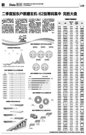二季度股东户数藏玄机:62股筹码集中 完胜大盘 2015-07-29 来源:证券时报网 作者: