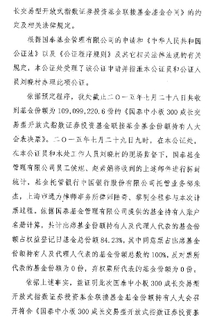 关于国泰中小板300成长交易型开放式指数证券投资基金联接基金清算期不再办理申购赎回业务的提示性公告 国泰中小板300成长交易型开放式指数证券投资基金联接基金以通讯方式召开了基金份额持有人大会,大会表决投票时间自2015年6月29日起,至2015年7月28日17:00止。会议表决通过了《关于终止国泰中小板300成长交易型开放式指数证券投资基金联接基金基金合同有关事项的议案》。持有人大会的表决结果及决议生效的公告详见2015年7月30日刊登在《中国证券报》、《上海证券报》、《证券时报》和基金管理人网站(www.gtfund.com)上的《国泰中小板300成长交易型开放式指数证券投资基金联接基金基金份额持有人大会表决结果暨决议生效的公告》。 根据持有人大会通过的议案及有关事项的说明,自2015年7月30日起,本基金进入财产清算期,不再办理申购、赎回业务。 特此公告。 国泰基金管理有限公司 2015年7月30日
