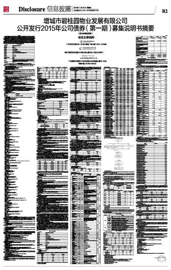 增城市碧桂园物业发展有限公司公开发行2015年公司债券(第一期)募集说明书摘要(面向合格投资者) 2015-07-30 来源:证券时报网 作者: