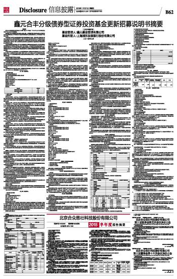 鑫元合丰分级债券型证券投资基金更新招募说明书摘要 2015-07-31 来源:证券时报网 作者: